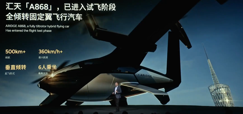 活动上,小鹏汽车董事长、CEO何小鹏展示了全新的"汇天A868飞行汽车"。 图片来源:直播截图 每经编辑|金冥羽 据悉,该款飞行汽车设计目标续航里程超过500公里,这使其具备了执行城市间航线的潜力,而不仅仅是市内短途交通。设计巡航速度超过360公里/小 时,远超地面交通,能极大缩短出行时间。 11月5日,小鹏科技日(2025 AI DAY)正式开幕。 据透露,这一代IRON是预研的最后一个版本,量产版本将不高于170cm。据介绍,新一代人形机器人IRON首发应用全固态电池,并搭载3颗图灵芯片和 物理世界大模型。 何小鹏表示,小鹏汇天陆地航母全球订单目前已经7000单,并有望创造载人飞行器年销量世界纪录。 何小鹏还提到,小鹏飞行汽车会执行"高管先飞计划",汇天管理团队亲身验证飞行安全量产交付前,管理者飞行里程必须超过5000公里。 图片来源:直播截图 此外,小鹏汽车宣布,将在2026年推出3款Robotaxi(无人驾驶出租车)车型,并于2026年开启试运营。 图片来源:直播截图 何小鹏表示,整车厂自己投入做Robotaxi,更有利于推动该产业的规模化与商业化,同时小鹏将自研软件、自制硬件、开放SDK等。据规划, ...
