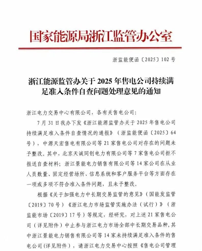 监管的"牙齿"正悄然咬合。随着全国统一电力市场加速推进,售电行业从野蛮生长步入精细化监管时代,过去那 种随便注册个售电公司就能赚钱的日子,一去不复返了。 电力交易大厅里,那些曾经熙熙攘攘的售电公司席位,如今正一批批空置出来。 01 监管趋严 售电市场迎来强监管时代 电力市场规则体系日益严密,监管力度不断加大。在浙江,233家售电公司被要求开展准入条件自查,最终38家 公司被发现存在问题。 这些公司必须在9月30日前完成整改,否则将面临更严厉的处理。 浙江能监办的行动并非特例。山西电力交易中心也对8家售电公司采取了停牌措施。 浙江能源监管办一纸通报,21家售电公司被中止参与全部中长期交易品种。这已不是孤例,八月以来,陕西有两 家公司因不合理抬高批发交易价格被红牌警告,山西则有8家售电公司被停牌。 根据山西能源监管办的通知,这些公司存在"职称人员职称证书不实、从业人员重复参保"等问题。 停牌意味着这些售电公司将失去新签零售合约、参与中长期日滚动交易等诸多权限。整改期限只有三个月,到期 未完成整改的将转入强制退市程序。 陕西的案例更显示出监管对市场操纵行为的零容忍。华能陕西能源销售有限公司与华能铜川照金煤电有限公司 ...