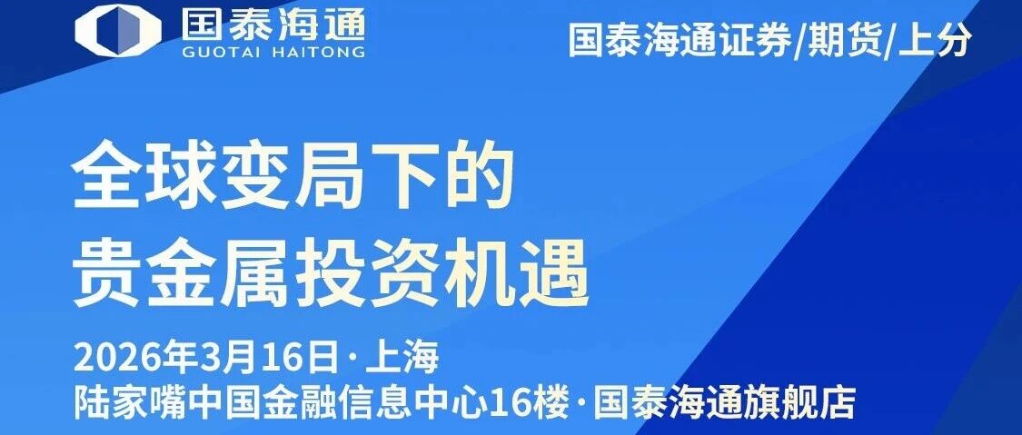 邀请函|国泰海通2026全球变局下的贵金属投资机遇