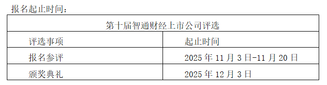 “第十届智通财经资本市场年会”上市公司评选报名通道正式开启!