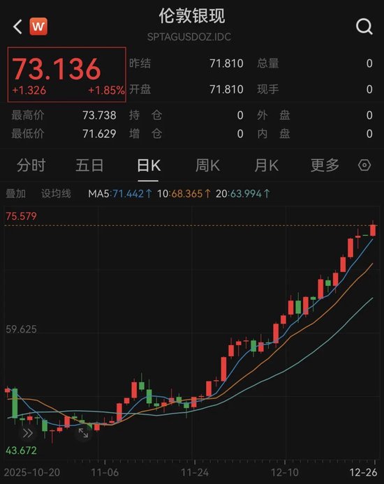 全球央行降息潮 - 埃及央行于12月25日决定将基准利率下调100个基点,存款利率降至20%,贷款利率降至21%,这是其2025年内第五次降息 [1] - 俄罗斯央行于12月19日将基准利率下调50个基点至16%,为连续第五次降息 [2] - 英国央行于12月18日将基准利率下调25个基点至3.75%,为本年度第四次降息,背景是11月CPI同比涨幅降至3.2%的八个月低点,且预测2025年第四季度经济将陷入零增长 [2][3] - 墨西哥央行于12月18日将基准利率下调25个基点至7%,为连续第十二次降息 [3] - 智利央行于12月16日将基准利率从4.75%下调至4.5%,为今年第二次降息 [3] - 美联储于12月10日宣布下调基准利率25个基点,从3.75%—4%区间降至3.5%—3.75%区间,为连续第3次降息,累计降息幅度75个基点 [4] 贵金属价格表现 - 在全球新一轮降息潮推动下,白银价格持续上涨,12月26日伦敦银现涨近2%,COMEX白银涨超2%,均创盘中历史新高 [5] - 沪银夜盘暴涨5.5%,突破18000元/千克 [7] - 国际金价同步上涨,伦敦金现重回4500美元/盎司上方,现涨0.54%;COMEX黄金上涨0.55%,报4528美元/盎司 [10] 相关基金动态 - 国投瑞银白银期货证券投资基金(LOF)宣布从12月29日起,将A类基金份额的定期定额投资金额上限由500元下调至100元,C份额暂停申购 [9] - 该基金于12月26日开盘起至10:30停牌后复牌,并警示二级市场交易价格存在明显溢价风险,截至12月25日,其二级市场收盘价2.804元较12月24日基金份额单位净值1.9278元高出45% [9]