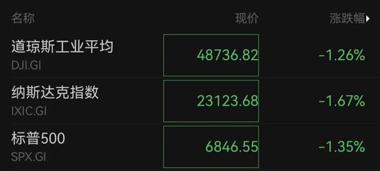 市场表现 - 当地时间1月20日,美股三大股指集体低开,道琼斯工业平均指数跌1.26%至48736.82点,纳斯达克指数跌1.67%至23123.68点,标普500指数跌1.35%至6846.55点 [1][12] - 美股大型科技股全线下跌,英伟达与博通跌幅超过3%,谷歌A、微软、亚马逊、Meta、特斯拉跌幅超过2%,苹果与台积电小幅下跌 [2][13] - 欧洲主要股指亦大幅下跌,英国富时100指数跌1.10%至10082.97点,法国CAC40指数跌1.05%至8026.57点,德国DAX指数跌1.34%至24623.58点,意大利MIB指数跌1.59%至44479.47点,欧洲STOXX50指数跌1.16%至5857.21点 [2][3][13] 地缘政治与贸易冲突 - 美国总统特朗普于1月20日再次强调美国要拥有格陵兰岛,并发布经过编辑的图片,暗示吞并格陵兰岛、加拿大及委内瑞拉 [3][15][5][17] - 特朗普宣布将从2月1日起对来自丹麦、挪威、瑞典、法国、德国、英国、荷兰和芬兰的输美商品加征10%关税,并计划自6月1日起将税率提高至25%,直至就“购买格陵兰岛”达成协议 [10][22] - 特朗普威胁对法国葡萄酒和香槟征收高达200%的关税 [9][21] - 欧盟委员会主席冯德莱恩回应称,丹麦及格陵兰岛领土主权完整不容谈判,并指出额外增加关税的做法是错误的 [8][20] - 法国官方回应称,美国的关税威胁不可接受且无效,并强调整个欧盟必须作出回应 [9][21] - 丹麦经济事务大臣表示,欧盟已准备好对价值930亿欧元(约合6900亿丹麦克朗)的美国商品加征反制关税 [10][22] - 欧盟将于1月22日举行特别峰会,讨论格陵兰问题与欧美关系 [10][22] 军事动态 - 挪威、瑞典、法国、德国、英国、荷兰和芬兰等欧洲国家宣布向格陵兰岛派兵,参加由丹麦发起的“北极耐力”军事演习 [11][23] - 欧盟委员会主席冯德莱恩表示,欧盟国家应把国防支出的增长用于北极地区安全 [9][21]