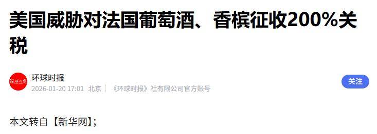 美对法加征关税事件 - 美国政府宣布对法国葡萄酒和香槟征收高达200%的关税 [1] - 此次关税税率远高于中美贸易摩擦时期的顶峰水平 [2] 关税政策背景与性质 - 关税政策被视为政治角力的延伸和胁迫工具,而非正常的贸易政策 [5][9] - 政策逻辑被描述为“你不听话,我就让你疼”的经济勒索 [9] 对法国葡萄酒行业的影响 - 加征200%的关税基本等同于“禁止进口”,法国酒将彻底失去美国市场 [10] - 即使加税20%,法国酒业预计损失约8亿欧元,200%关税将导致更严重后果 [10] - 美国进口商将要求法国方面大幅降价,导致法国酒业面临利润空间消失或产品滞销的两难困境 [12] - 整个产业链将遭遇寒冬,影响从葡萄种植农到出口运输商,相关岗位数以万计 [12] - 该政策可能使法国这一文化象征和经济支柱产业直接“塌方” [12] 地缘政治与外交关系背景 - 政策导火索包括法国在“格陵兰岛”事件中向该岛派出十几名士兵,成为欧洲国家中出兵最多的国家 [5] - 法国在北极事务中发声的举动被美国视为“挑衅” [7] - 另一导火索是法国总统马克龙拒绝了美国关于组建“和平委员会”的邀请 [7] - 德国在类似事件中迅速妥协撤军,凸显了法国作为少数公开与美国唱反调国家的处境 [14] 法国的处境与选择 - 法国正处在国内产业受冲击与坚持自主外交立场的十字路口 [17] - 在德国已选择妥协的前提下,法国若坚持立场将承受加倍压力,但其坚持具有重要意义 [19]