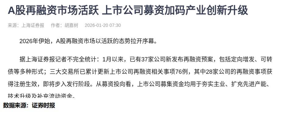 今日焦点 - 易点天下股票因连续9个交易日收盘价涨幅偏离值累计超过100%而停牌核查结束,公司核查后声明其业务不涉及GEO业务且未形成相关收入,主营业务是为企业提供出海整合营销、数字营销、广告变现等营销服务以及AI数字创意、BI决策、CI智能化多云管理等出海数字化服务,主营业务未发生变化,公司经营活动正常,股票将于2026年1月20日复牌 [1] - 天合光能预计2025年归属于母公司所有者的净利润为亏损65亿元到75亿元,主要因光伏行业面临阶段性供需失衡、产业链开工率低、市场竞争加剧及国际贸易保护政策影响,上半年产品价格承压,下半年虽价格提升但受硅料、银浆等关键原材料成本快速上涨影响,组件业务全年盈利能力下滑,同时公司对出现减值迹象的长期资产计提减值准备 [1] 经营业绩:业绩增长 - 鼎通科技2025年净利润同比预增120% [6] - 明泰铝业2025年净利润同比预增12%-14% [6] - 安孚科技2025年净利润同比预增28.55%-50.91% [6] - 理邦仪器2025年净利润同比预增75%-105% [6] - 成都华微2025年净利润同比预增74.35%-108.73% [6] - 瑞迈特2025年净利润同比预增22.28%-51.24% [6] - 福莱蒽特2025年净利润同比预增81.67%-127.08% [6] - 润丰股份2025年净利润同比预增128.85%至159.95% [6] - ST远智2025年净利润同比预增396.77%-507.16% [6] - 好上好2025年净利润同比预增115.64%-175.35% [6] - 佛燃能源2025年度净利润10.01亿元,同比增长17.26% [6] - 吉宏股份2025年净利润同比预增50.00%-60.00% [6] 经营业绩:业绩下滑/亏损 - 天箭科技预计2025年度利润总额亏损1.7亿元至2.42亿元,归属于上市公司股东的净利润亏损1.76亿元至2.5亿元,扣非后净利润亏损1.76亿元至2.5亿元,预计营业收入为-1.4亿元至-2.01亿元,公司股票交易可能被实施退市风险警示 [2] - 水井坊预计2025年归属于母公司所有者的净利润为3.92亿元,同比下降71%,营业收入预计为30.38亿元,同比下降42%,2025年白酒行业在宏观经济周期、产业调整周期与政策调整的多重影响下进入深度调整阶段,传统商务宴请等消费场景恢复较缓,行业库存整体处于高位 [3] - 华鼎股份2025年净利润同比预降47%-61% [6] - 江苏博云2025年净利润同比预降39.74%至18.47% [6] - 潞化科技预计2025年净利润亏损6.38亿元-8.63亿元 [6] - 苏能股份2025年净利润同比预降81%—87% [6] - 盛景微2025年净利润同比预降34.53%-56.35% [6] - 莱斯信息2025年净利润同比预降53.50%-69.00% [6] - 和邦生物预计2025年净亏损4.70亿元-5.70亿元 [6] - 海优新材预计2025年净亏损4.40亿元-5.20亿元 [6] - 津投城开预计2025年净利润亏损13.60亿元-15.40亿元 [6] - 上海石化预计2025年净利润亏损12.89亿元-15.76亿元 [10] - 三房巷2025年净利润预亏7.6亿元—8.4亿元 [10] - 大龙地产预计2025年净亏损2.3亿元-2.8亿元,且2025年第四季度签约面积同比减少90.20% [10] - 勘设股份预计2025年净亏损3.61亿元-4.33亿元 [10] - 华远控股预计2025年净亏损8500万元-1.15亿元 [10] - 宏柏新材预计2025年净利润亏损1.10亿元-1.50亿元 [10] - 中文传媒2025年净利润同比预降58.36%-65.07% [10] - 北元集团2025年净利润同比预降49.34%-55.44% [10] - 恒烁股份预计2025年净亏损9832万元 [10] - 金煤科技预计2025年净亏损1.71亿元 [10] - 华建集团2025年净利润同比预降79.4%-84.2% [10] 重要事项:控制权变更/股权转让 - 江化微控股股东淄博星恒途松拟将其持有的公司9238万股(占总股本23.96%)以20元/股、总价18.48亿元转让给上海福迅科技,股份转让完成后,公司控股股东将变更为上海福迅科技,实际控制人将变更为上海市国资委,公司股票将于2026年1月20日复牌 [4][5] 重要事项:并购重组/投资合作 - 华菱线缆终止收购湖南星鑫航天新材料股份有限公司控制权,原因为双方在部分具体协议条款上未能达成一致,星鑫航天主要业务为耐高温防热材料、氮化硅陶瓷制品、酚醛树脂材料等,为神舟系列飞船、嫦娥系列探测器、天宫空间站以及多种运载火箭提供配套产品 [3] - 新凤鸣拟购买独山港口发展35%股权 [10] - 明德生物拟3570万元增资并收购湖南蓝怡51%股权 [10] - 晶丰明源拟398.32万元转让上海类比半导体技术有限公司1.7778%股权 [10] - 南山铝业拟投资4.37亿美元在印尼建设年产25万吨电解铝项目 [10] - 长源电力增资全资子公司并投资建设国能长源武汉江夏湖泗120MW渔光互补光伏发电项目(一期80MW) [10] - 中红医疗2026年度拟使用不超过20亿元闲置自有资金投资低风险型理财产品 [10] - 五洋自控全资子公司拟与专业投资机构共同投资设立投资基金 [10] - 莱克电气拟出资1.9亿元参与设立创业投资基金 [10] 重要事项:项目中标 - 平治信息预中标约4.89亿元智算服务项目 [10] - 众合科技联合体中标重庆轨道交通18号线北延信号系统工程项目 [10] - 双良节能中标2.36亿元招标项目 [11] - 恒尚节能中标三个工程项目 [11] 重要事项:再融资/资本运作 - 江西铜业拟申请注册发行不超过250亿元债务融资工具,包括中期票据不超过150亿元和超短期融资券不超过100亿元 [2] - 汇川技术筹划发行H股股票并在香港联交所上市 [14] - 广哈通信向特定对象发行股票申请获得中国证监会同意注册批复 [14] - 国机重装拟向国机财务、农业银行、中国银行、工商银行申请不超过82.98亿元综合授信额度 [14] - 金风科技终止公募REITs申报发行工作 [14] 重要事项:医药/产品批准 - 兴齐眼药SQ—24071滴眼液获得临床试验批准通知书 [14] - 欧普康视软性亲水接触镜注册申请获受理 [14] - 艾迪