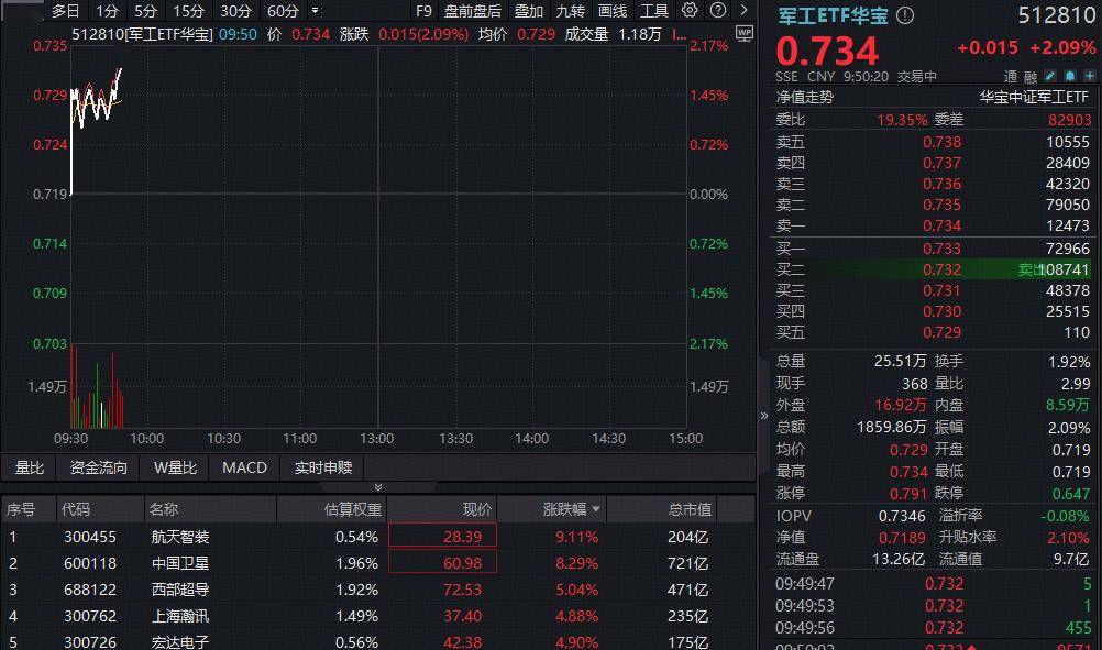 ETF盘中资讯|商业航天狂欢继续,航天智装暴拉10%!军工ETF华宝(512810)涨超2%创3个月新高