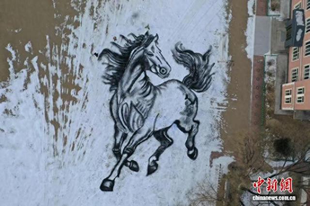 中新网牡丹江1月27日电(姜辉 韦洪基)日前,在黑龙江省牡丹江穆棱市河西镇中心小学雪地画创作基 地,一幅5000平方米巨型骏马雪地画惊艳亮相。 这幅作品由穆棱市河西镇中心小学教师黄菊、穆棱市第一中学教师尹玲与穆棱市教师进修学校教师尚衍 军以矿泉水瓶为创作工具,历时4天创作完成。画卷中的骏马栩栩如生、形神兼备,宛若踏雪奔腾而 来,不仅勾勒出一幅别具风情的冰雪画卷,也为当地冬日旅游注入了独特魅力。 师以矿泉水瓶为工具,创作巨型骏马雪地画。 韦洪基 摄 "要说在雪地上画画,我们并不是首创,也不是画得最好的,我们就图个乐呵,画完了很有成就感。我 们想告诉全国的朋友们,黑龙江的冰雪并不只有白色,冰雪文化也可以是五颜六色的,我们用这幅画来 点亮我们穆棱的冬天。"穆棱市教师进修学校教师尚衍军说。 今年,3名教师以骏马图案为蓝本,先在雪面完成丈量、划线、构图等工序,随即通过无人机高空视角 校准画面。遇有构图失衡、细节欠佳之处,便反复修改完善。布局定型后,他们将黑色环保颜料装入矿 泉水瓶,以带孔瓶盖为画笔,捏出均匀水线细致上色。每完成一个骏马部位,都通过无人机俯瞰检查, 及时修正瑕疵,让雪地骏马的形象越来越发鲜活灵动。 据悉, ...