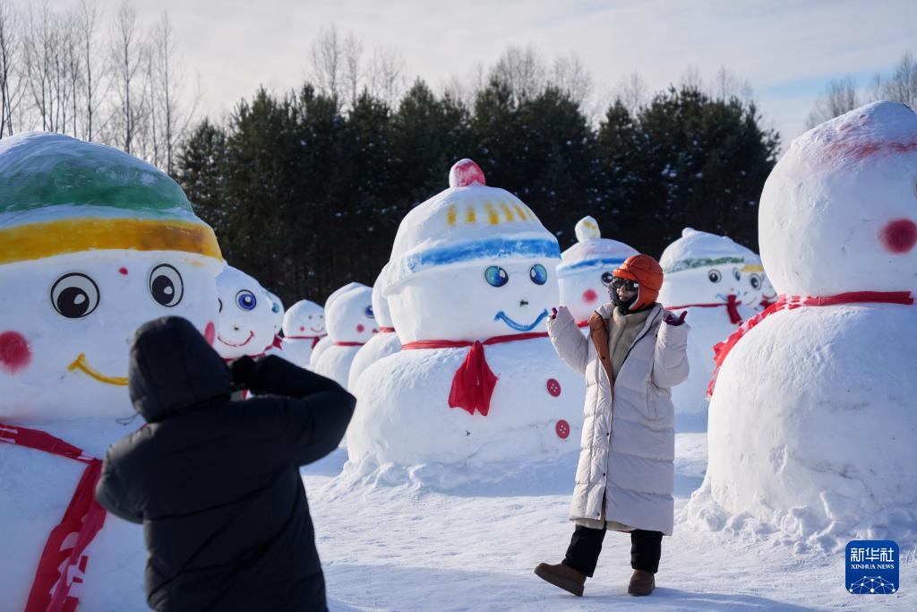 冬日里,在有着"神州北极"之称的黑龙江省漠河市,冰雪旅游市场持续走热,游客纷至沓来。 1月29日,游客在漠河北极村景区内的北极沙洲与雪人"矩阵"合影。 ...