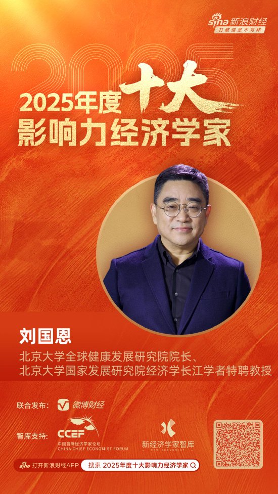 评选事件与主办方 - 新浪财经携手首席经济学家论坛、新经济学家智库及微博财经共同评选出“2025年度十大影响力经济学家” [1][6] - 评选基于“专业性、影响力、创新性、前瞻性、活跃度”五大维度,结合评审团投票及作品出产率、影响力等数据综合得出结果 [1][6] 获奖经济学家及其背景 - 北京大学全球健康发展研究院院长、北京大学国家发展研究院经济学长江学者特聘教授刘国恩荣膺“2025年度十大影响力经济学家” [1][6] 经济学家核心观点 - 刘国恩探讨了“当鲍莫尔成本病遇到人工智能,将会发生什么” [5][10] - 刘国恩指出“分级诊疗是一块硬骨头,必须要解决”并分析了“为什么分级诊疗任重道远” [6][11] - 刘国恩谈及减肥,认为“健康的食谱要超过运动的效果” [6][11] 宏观经济背景 - 2025年中国经济在内外多重挑战下稳步回升、提质向好,宏观政策精准协同、提质增效,在稳增长、调结构、防风险中稳步前行 [1][6] - 中国经济高质量发展深入推进,影响力经济学家凭借学术底蕴与实战经验洞悉发展大势 [1][6]