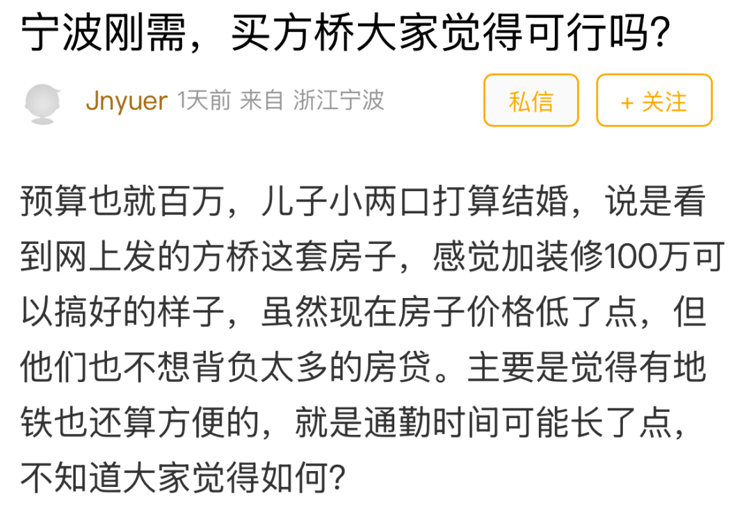 宁波小夫妻百万刚需“瞄准”方桥房!网友担忧:预算内的最优解,未来基本砸手里