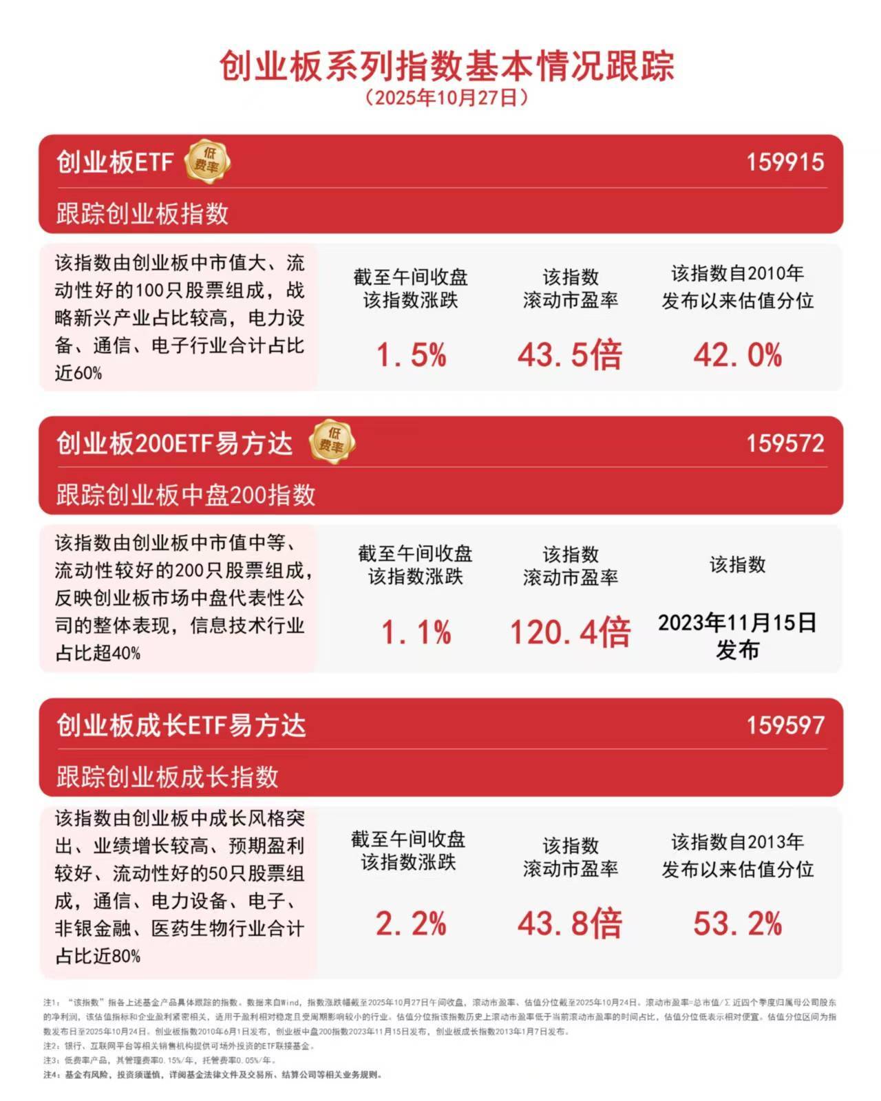 创业板系列指数集体上涨,关注创业板200ETF易方达(159572)、创业板ETF(159915)等产品表现