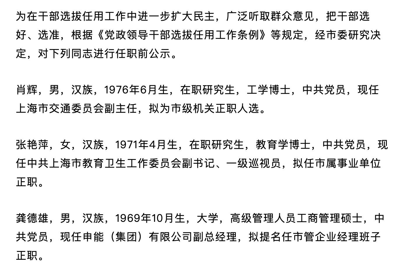 11月14日晚间,上海市委组织部发布上海市市管干部任职前公示,东方证券(600958)董事长龚德雄名列其中。 被传与上海券商合并有关 公示显示,龚德雄生于1969年10月,高级管理人员工商管理硕士,中共党员,现任申能(集团)有限公司副总经理,拟提名任市管企业经理班子正职。 早在当天上午,就有一个名叫"芭菲媛"的自媒体平台曝出龚德雄即将卸任东方证券董事长的消息,并称龚德雄将调往上海国际集团,这一人事变动的背景在 于上海多家券商的合并。 "芭菲媛"提到,早先市场就出现过上海券商合并分三步走的传言:第一步,东方证券与上海证券合并;第二步,上海国际集团接手合并后的主体;第三步, 由于上海国际集团当前是国泰海通(601211)的股东之一,在上海证券和东方证券完成合并后,在未来进一步与国泰海通进行合并。这一传言目前并没有得 到官方证实,"芭菲媛"分析认为,东方证券与上海证券合并的可能性较大,另外两条消息存在不确定性。 这一观点的出现,恰逢上海推动券商整合的关键时期。2024年12月10日,上海市人民政府办公厅印发《上海市支持上市公司并购重组行动方案(2025-2027 年)》,明确"加快推进证券公司合并,打造一流投资银行 ...