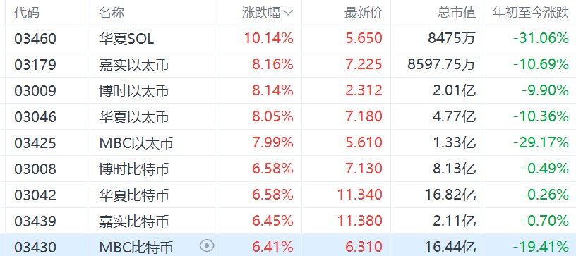 港股异动丨加密货币现货ETF全线重挫,博时以太币、嘉实以太币大跌超10%
