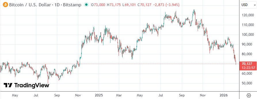 币圈信仰崩塌?比特币一度失守7万关口,预测市场押注继续下挫