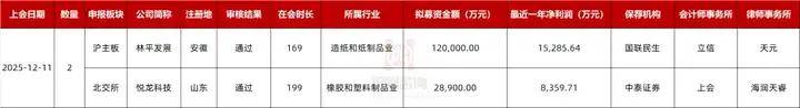 上会审核结果概览 - 2025年12月11日,两家企业IPO上会均获通过,合计拟募资14.89亿元 [1] - 林平发展申报沪主板,注册地安徽,拟募资12.00亿元,最近一年净利润1.53亿元 [2] - 悦龙科技申报北交所,注册地山东,拟募资2.89亿元,最近一年净利润0.84亿元 [2] 悦龙科技上市历程与监管关注 - 公司最初于2023年12月28日申报创业板辅导,后于2024年11月26日将上市板块变更为北交所 [2] - 北交所于2025年5月26日受理其IPO申请,经过两轮审核问询后于12月11日上会通过 [3] - 监管在反馈问询期间重点关注其与关联公司Techfluid U.K. Ltd的交易、业绩增长可持续性及销售真实性 [3] 上市委审议现场问询要点 - **林平发展**被问询:1) 结合销售收入、净利润变动及下游需求说明业绩稳定性;2) 向个人采购废纸和煤炭的合理性、规范性及成本核算准确性,以及已注销供应商情况的合理性 [3] - **悦龙科技**被问询:1) 结合下游行业周期及竞争优势,说明原油价格下跌对业绩的影响,并结合收购Techfluid U.K. Ltd的情况说明对未来业绩的影响;2) 结合现有产能利用情况,说明募投项目“新建自浮式输油橡胶软管生产项目”新增产能的消化能力 [4] 关联交易与资产收购分析 - 报告期内,公司第一大客户Techfluid U.K. Ltd由实际控制人徐锦诚控制,负责欧洲等区域经销 [6] - 2022年及2023年,Techfluid U.K. Ltd带来的营收分别为2970.25万元和4292.04万元,占当年营收比重分别为15.73%和19.63% [7] - 为减少关联交易,公司于2025年4月3日通过子公司收购Techfluid U.K. Ltd 85%的股权、100%表决权及77.17%分红权,并将其纳入合并报表 [7] - 监管问询关注向Techfluid U.K. Ltd销售价格的公允性、收购的合理性及是否存在利益输送 [8] - 公司解释收购有利于减少关联交易、避免同业竞争,且分红权比例低于所有权比例有助于提高管理层积极性 [9] - 经测算,若按向无关联第三方销售价格向Techfluid U.K. Ltd销售,对报告期各期业绩影响较小 [9] - 收购前后,模拟不合并Techfluid U.K. Ltd的业绩与合并后业绩差异很小:2024年差异-54.66万元(占当期业绩0.65%),2025年1-6月差异79.14万元(占当期业绩1.52%) [11] 公司财务与经营业绩表现 - **营业收入持续增长**:2022年至2024年,营业收入分别为1.89亿元、2.19亿元及2.68亿元 [12] - **扣非净利润持续增长**:同期扣非归母净利润分别为4920.95万元、5470.55万元及7774.22万元 [12] - **2025年上半年业绩**:2025年1-6月营业收入为1.53亿元,净利润为5302.19万元,扣非净利润为5358.26万元 [14] - **毛利率水平较高**:报告期内毛利率从51.97%上升至59.68%,2025年上半年为57.01% [14] - **加权平均净资产收益率**:从2022年的16.93%上升至2024年的23.28%,2025年上半年为12.15% [14] - **资产负债率下降**:母公司资产负债率从2022年的25.86%下降至2025年6月30日的16.77% [14] 产品结构、单价与收入驱动因素 - **产品收入结构变化**: - 陆地油气柔性管道:收入占比从2022年的9.20%快速提升至2024年的20.99%,2025年上半年进一步升至30.23% [14][16] - 海洋工程柔性管道:收入占比2022年为31.16%,2024年为35.38%,2025年上半年降至26.23% [14][16] - 工业专用软管:收入占比从2022年的53.57%下滑至2024年的39.45%,2025年上半年为40.12% [14][16] - **产品销售单价波动**: - 陆地油气柔性管道单价从2022年的595.82元/标米大幅上升至2024年的1510.19元/标米 [14] - 海洋工程柔性管道单价整体呈下降趋势,从2022年的1507.25元/标米降至2024年的1404.25元/标米 [14][16] - 工业专用软管单价从2022年的22.32元/标米波动至2024年的23.20元/标米 [16] - **业绩增长驱动**:主要系国际油价提升和油气领域固定资产投资增加,带来海洋工程和陆地油气柔性管道需求增加 [12] - **2024年业绩趋势分化**:公司2024年业绩持续增长,但与同行业可比公司变动趋势不一致 [13] - **公司解释分化原因**:产品结构、客户结构、市场布局与可比公司存在差异,且海工装备市场景气度提升和陆地油气压裂技术应用加强驱动业绩增长 [17] 业绩可持续性及竞争环境 - **公司对可持续性的论证**:下游海洋工程、船舶制造、陆地油气压裂等领域处于上行周期,公司采取聚焦高端、差异化竞争策略,技术优势、优质客户资源和行业环境共同驱动增长,在手订单充足,业绩增长可持续性强 [18] - **面临的竞争压力**:行业内竞争加剧,例如利通科技已取得API 17K资质、德石股份相关产品进入中试阶段,工业专用软管市场竞争以价格竞争为主 [18] - **产品单价与毛利率可持续性**:公司认为基于产品、技术等核心竞争优势,能保持利润空间,维持毛利率水平稳定,主要产品单价下行风险较低 [20] - **下游行业周期判断**:全球海工装备制造业处于复苏与重构期,进入下行周期风险低;陆地油气开采领域因非常规油气储量丰富及压裂软管对钢管的替代趋势,需求高速增长具备可持续性 [21] - **在手订单情况**:截至2025年10月末,公司在手订单充足,合计1.37亿元 [22] 销售模式、收入确认与真实性核查 - **销售模式**:采取“直销主要拓展境内业务+非直销向经销商或贸易商出售,主要拓展境外业务”的复合销售模式 [23] - **经销商库存**:部分经销商客户期末库存产品数量占当期销售数量的比例达30%-50%,公司解释为保有必要常备库存(3-6个月销售量)以响应终端临时需求 [25] - **收入确认政策**:内销根据签收单确认收入,外销(主要为FOB、CIF、EXW)在报关离境获取提单时确认收入 [23] - **单据缺失情况**:公司部分销售合同、运单、签收单等原