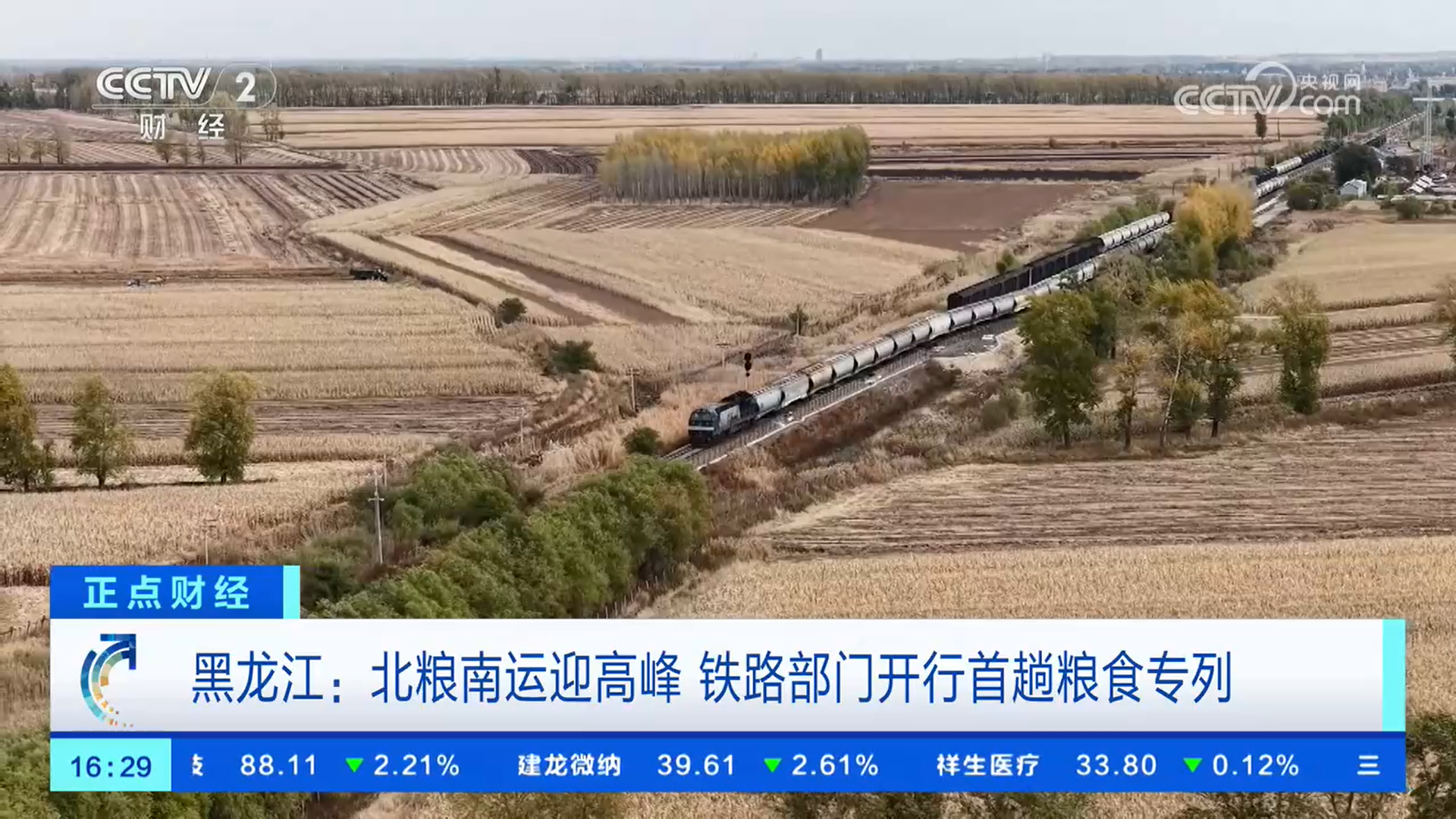 北粮南运进入高峰期 - 黑龙江省作为重要粮食主产区,10月以来北粮南运进入高峰期,铁路部门调整运力并开辟绿色通道以保障运输 [1] - 黑龙江省粮食作物成熟期提前3至5天,粮食收购与外运需求提前进入高峰期 [3] - 国铁哈尔滨局自9月下旬启动秋粮运输以来,共完成粮食运输202.3万吨,同比增长189.7% [5] 铁路运输效率提升 - 铁路部门开行图定直达货运班列,具有定点、定线、定时、定车次特点,实现一站直达且无需解编 [3] - 直达班列压缩货物在途运行时间近11个小时 [3] - 铁路部门创新物流模式,通过开行多式联运和规模化城际班列提升运输能力 [5] 定制化运输方案 - 国铁哈尔滨局实时掌握企业产量、运量及运输方向信息,为企业量身定制短驳装载运输方案 [5] - 一列满载3200余吨玉米的粮食专列从双鸭山升昌站驶向辽宁大连金港,货物将转运至上海、四川、云南等地 [3]