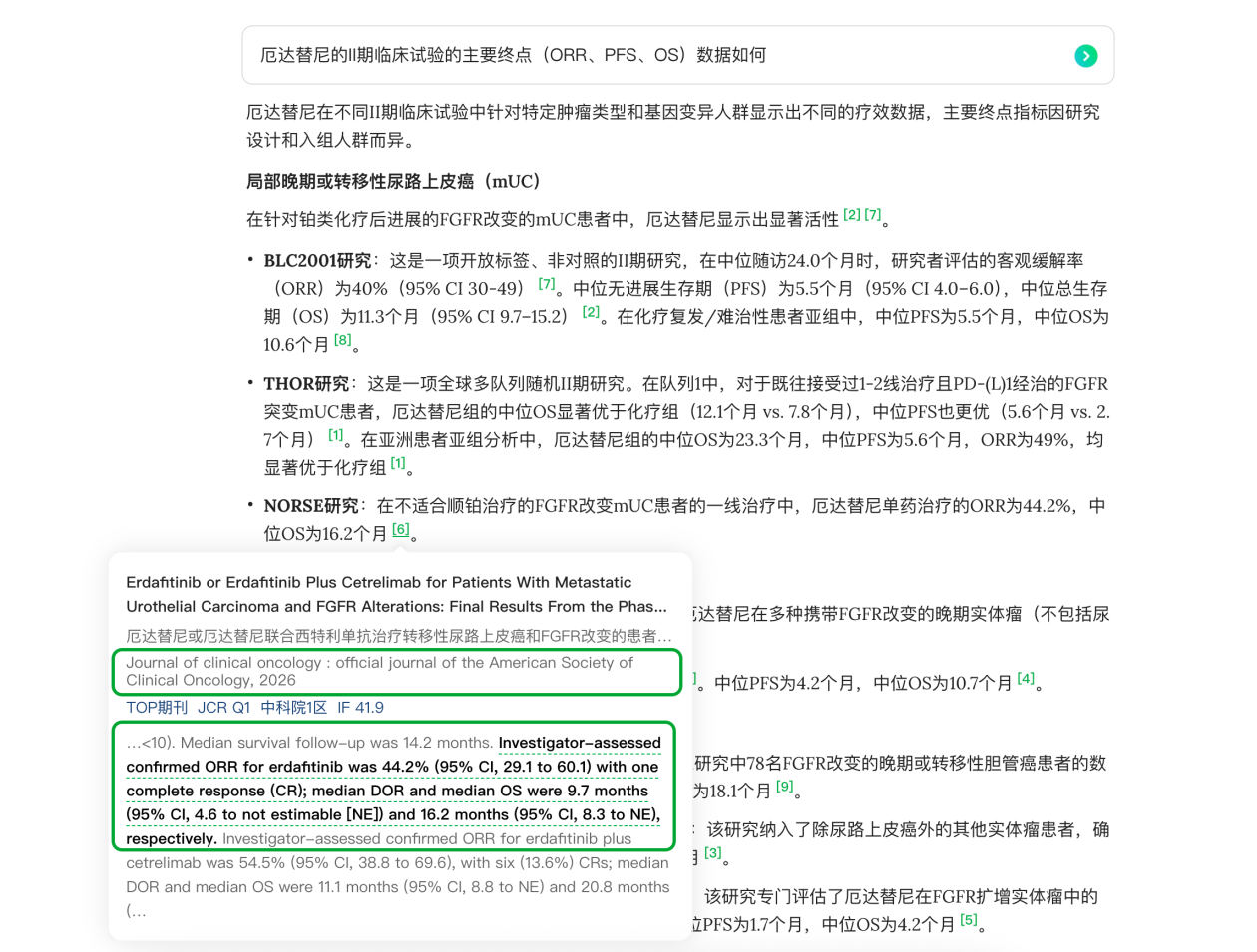 公司产品更新 - 阿里健康旗下医学AI应用“氢离子”于1月26日迎来关键版本更新,上线“动态证据定位”新功能 [2] - 新功能可将过去AI回答中“模糊引用一段话”的做法,升级为精准定位原文中直接支撑观点的具体语句,并同步校验时效性、权威性与逻辑一致性 [2] - 该功能旨在解决医生对AI的信任问题,核心在于将行业通行的“静态引用”升级为可演进的“活证据” [2] 技术架构与实现 - 氢离子通过“三维循证架构”独创技术体系,系统性解决了传统静态知识库无法判断内容是否过期、证据是否可靠的行业难题 [2] - 在智能问答功能上,首次将时效性与权威性融入引用逻辑,通过对全球指南与文献的日更追踪与智能筛选,确保每次回答基于最新、最可靠的医学证据 [2] - 系统以天为单位对全球权威指南与文献进行更新与筛选,并对全球数亿条数据进行权威性加权,从源头减少低质信息干扰 [3] 功能应用与效果 - 以搜索“厄达替尼的Ⅱ期临床试验的主要终点数据”为例,系统会给出结构化结论,并在每项结论旁标注引用标签,点击可查看原始文献及支撑的具体语句,实现从结论到证据的无缝追溯 [3] - 该功能使信息验证成本显著降低,医生无需暂停决策去翻查原始文献,因为AI已预先完成“此刻是否有效、来源是否权威、逻辑是否成立”的三重校验 [3] - 试用者反馈,该功能提供的循证是一个动态的、可验的证据定位,这使得医生敢于采纳AI的回答 [3]