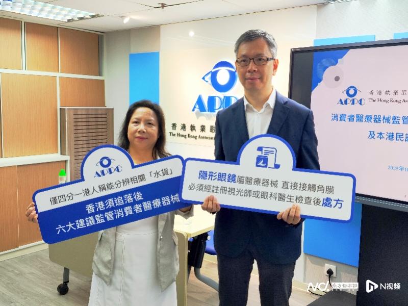 香港执业眼科视光师协会会长叶笑丽(左)及眼科专科医生汤文杰(右)出席消费者医疗器械监管国际研究及调 研结果发布会 俗称"彩瞳"的装饰性隐形眼镜,近年来在香港市场上流行,但非正规渠道的"水货"隐形眼镜质量良莠不齐,且有 安全风险,引起社会关注。10月21日,香港执业眼科视光师协会举行新闻发布会,公布了全球消费者医疗器械监 管对比研究和调研结果。该调查发现,香港尚未建立医疗器械法例,而消费者普遍欠缺对相关平行进口产品(俗 称"水货产品")的分辨能力。该协会也围绕规管医疗器械立法提出了多项建议,希望香港特区政府设立消费者医 疗器械强制注册制度,同时限制未注册从业者的网络销售行为,减低对消费者的健康风险等。 香港执业眼科视光师协会早前对全球消费者医疗器械(包括隐形眼镜)的监管进行对比研究,发现全球多地都已 经建立了健全的医疗器械监管制度及法律,涵盖对消费者医疗器械的监管。香港执业眼科视光师协会会长叶笑丽 表示,尽管各地对隐形眼镜的监管方式不同,但对这一风险较高的消费者医疗器械,都有比香港更高的监管要 求。该协会一直关注公众的眼睛健康,建议消费者应该从合法及安全的途径验配眼部产品。 另外,为了解公众对消费者医疗器械的风 ...