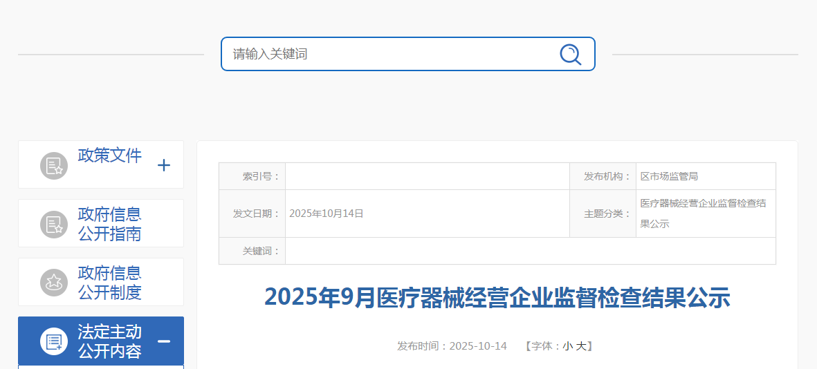 上海市嘉定区市场监督管理局2025年6月份医疗器械经营企业监督检查结果公示