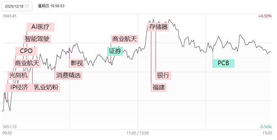 12月18日,A股三大股指走势分化,沪指低开高走高位震荡,深成指及创业板指低开小幅回升后震荡走低,截止收盘,沪指涨0.16%报3876.37点,深成指 跌1.29%报13053.97点,创业板指跌2.17%报3107.06点,科创50指数跌1.46%报1305.97点;沪深两市成交额1.66万亿,全市场近2900只个股上涨。 一、板块异动 二、涨跌停温度 从板块来看,银行板块震荡拉升,上海银行涨超3%。零售概念走强,中央商场、上海九百涨停。商业航天概念走势活跃,盛洋科技2连板,顺灏股份涨 停。医药商业延续强势,鹭燕医药2连板,重药控股7天4板。IP经济概念表现活跃,广博股份、三湘印象涨停。 今日全市场共61股涨停,连板股总数17只,19股封板未遂,封板率为76%(不含ST股、退市股)。 三、涨跌家数 | 00261 | 座住化 | 10:50 | 1 AI按摩机器人 | | --- | --- | --- | --- | | 688246 | 嘉和美康 | 13:38 | 1 智能医疗 | | 002727 | 心堂 | 14:03 | 1 云南连锁药店 | | 301017 | 激玉平民 | 14:21 | ...
