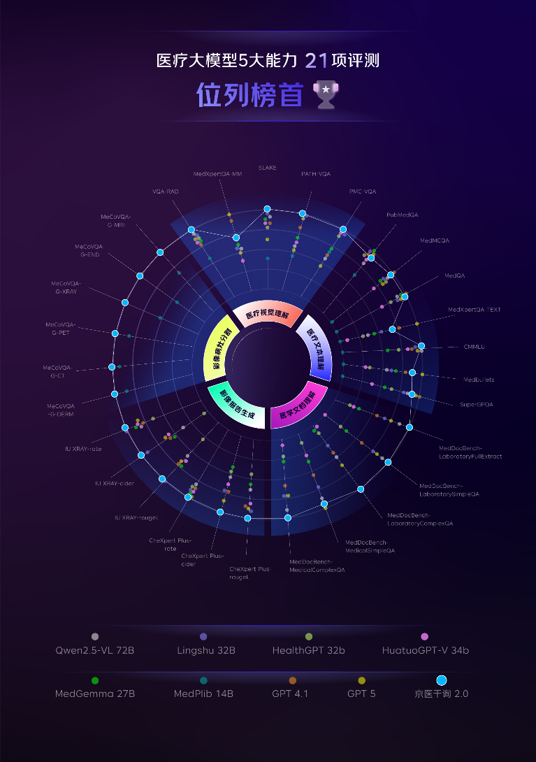 文章核心观点 - 京东健康在2025医学界价值医疗大会上展示了其医疗大模型“京医千询”的核心能力与生态共建进展 该模型通过开源推动行业协同创新 旨在破解医疗普惠难题并逼近临床认知边界 [1] - 全新升级的“京医千询2.0”以多模态感知、拟人对话、可信推理三大核心能力为支撑 构建了适配医疗健康全场景的技术体系 [1] “京医千询”医疗大模型的技术能力 - 多模态技术实现了从文本到影像的全维度信息深度整合 能精准提取病历、医嘱中的关键文本信息 并联动检验指标构建完整健康档案 [2] - 具备领先的像素级影像分析能力 输入医学影像后可精准识别每个像素点对应的解剖结构或病灶区域 覆盖脑部MRI、内窥镜、超声等专科特异性影像模态的原生理解 [2] - 多模态思维链推理能力模拟人类医生诊疗逻辑 通过全局观察、聚焦细节、整合多源信息输出可靠诊断结果 即便面对弯折、旋转的医学化验单也能通过结构化解析实现综合推理 形成可靠的第二诊疗意见 [2] - 在美国Med QA等执业医师资格考试中表现出色 在与ChatGPT的对比测试中 其医学计算能力达99%、医学问答能力达91%、文本总结能力达91% 在医疗大模型5大能力21项评测中全面领跑 [2] - 公司基于京东互联网医院沉淀的问诊数据构建了与临床任务高度吻合的评测集 该评测集在与ChatGPT的全面对比中 验证了“京医千询”在核心医疗能力上的领先性 [2] “京医千询”的技术演进与战略布局 - 已完成从通用基座模型到全科大模型 再到专科专病大模型的技术演进 [3] - 技术演进背后是公司在专科专病领域的长期深入布局 [3] - 未来将继续深耕专科专病大模型研发 通过技术创新破解医疗可及性、专业性与效率的“不可能三角” 让优质医疗资源通过AI技术触达更多人群 [3]