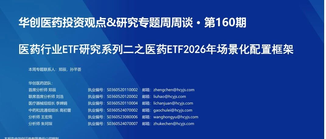华创医药周观点:医药行业ETF研究系列二之医药ETF2026年场景化配置框架 2026/01/25