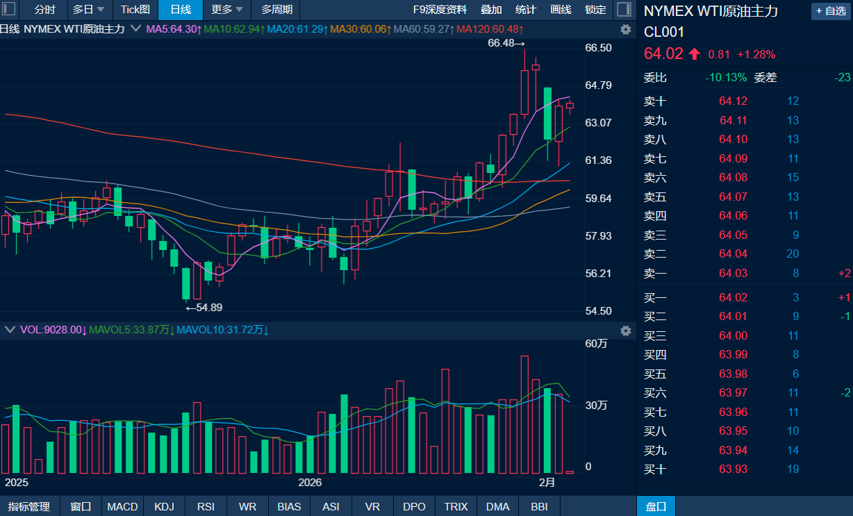 新华财经北京2月4日电(吴郑思)贵金属市场回暖叠加美伊局势不确定性萦绕,国际油价在本周初大幅回落后隔夜强势回升。截至纽约时间周二(2月3日) 14:30,WTI原油结算价报每桶63.21美元,较前一日上涨1.07美元,涨幅1.7%;布伦特原油期价上涨1.03美元,涨幅1.6%,结算价报每桶67.33美元。 与此同时,3日早些时候,英国海事安全企业先锋技术公司及其他一些消息源称,一艘美国油轮当天下午在霍尔木兹海峡无视要求其停船的警告,一度被数 艘武装快艇包围。美军中央司令部发言人3日说,美军当天在阿拉伯海击落伊朗一架无人机,并在当天还护送一艘遭伊方船只逼近的美国油轮。这些消息不 禁令市场开始担忧双方的谈判能否按计划推进,进而成为推动3日国际油价大幅反弹的驱动。 短期利多因素仍在发酵后期过剩担忧不减 值得关注的是,除地缘因素带来的利多以外,1月以来驱动油价反弹的基本面利多因素仍在发挥作用:欧佩克+主要产油国1日决定,将在2026年3月继续暂 停增产;哈萨克斯坦原油生产和出口恢复慢于预期;北美遭遇的冬季暴风损及原油产量并提振取暖油需求;以及美印达成一项贸易协议后可能驱动印度原油 采购转向、令其他地区原油供应紧张的预 ...