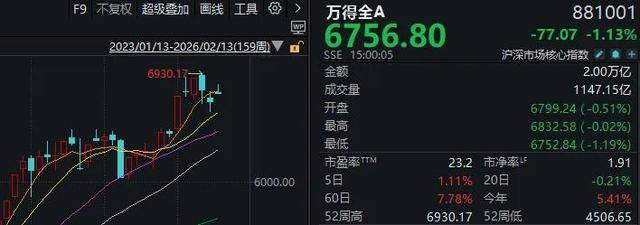市场整体与宏观环境 - A股市场于2月24日结束休市,开启农历马年行情 [1] - 截至2月13日,万得全A指数周K线显示,指数收盘于6799.24点,较前下跌0.51%,期间最高6832.58点,最低6752.84点 [2] - 春节假期期间宏观与外围消息面丰富,市场资金关注节后开市表现 [3] 贵金属板块 - 国际金价在春节假期期间显著上涨,2月22日重新站上5100美元/盎司关口,2月23日交易时段继续逼近5200美元关口 [5] - 具体数据显示,伦敦金现价格在2月23日报5160.760美元/盎司,当日上涨0.97% [6] - 金价上涨的直接推手包括美国关税政策变动及地缘政治风险,特朗普政府宣布对进口商品征收10%的“临时关税”,随后又声称提高至15%,叠加其考虑有限打击伊朗的言论,推升全球避险情绪 [6][7] - 长期来看,在全球“去美元化”、地缘冲突常态化及央行持续购金的背景下,黄金作为非信用资产的配置价值上升 [7] 人形机器人板块 - 2026年总台春晚上的人形机器人表演成为热点,春晚同款机器人一度热卖,提升了市场对A股机器人板块的关注度 [8] - 从港股市场看,春晚播出后的2月20日,港股人形机器人指数(887755)冲高回落,收盘微涨0.05%;至2月23日早盘,该指数再度走强 [8] - 指数成分股越疆(02432.HK)在2月20日股价大涨21.40%,因其协作机器人亮相春晚节目《每道光》 [8][9] - 东吴证券研报认为,人形机器人从多个方面完成了“超进化” [9] 影视院线与旅游消费 - 2026年春节档(2月15日—2月23日)为期9天,创下史上最长纪录 [11] - 截至2月23日8时,《飞驰人生3》票房已突破26亿元,领跑春节档,中国电影、万达电影、博纳影业、横店影视等上市公司参与了该片的出品或发行 [11] - 但截至2月22日,2026年春节档总票房(含预售)为51.3亿元,明显低于前两年春节档的总票房 [11] - 机构指出,春节出行消费增强,假期前6日全社会累计跨区域人员流动量增速上行,旅游市场呈现“南下避寒、北上冰雪”双线并行,出入境旅游双向增长,旅游酒店板块值得关注 [14] AI应用与科技板块 - 港股AI应用方向(GEO概念)在2月20日逆势走强,智谱、MINIMAX股价双双大涨,市值均突破3000亿港元,推动万得香港GEO指数(887799)当日大涨近16% [15] - 春节期间AI应用方向迎来多项催化,包括Anthropic发布Claude Sonnet 4.6、OpenAI下调支出目标、英伟达拟投资OpenAI 300亿美元,以及国产模型豆包2.0、阿里云千问Qwen3.5-Plus发布等 [17][19] - 华金证券研报建议,节后可逢低配置政策和产业趋势向上的行业,包括机械设备(机器人)、传媒(AI应用、游戏)、计算机(AI应用)、电子(半导体、AI硬件)等 [17] 重要公司事件与宏观数据 - 英伟达将于当地时间2月25日盘后公布财报,被视为人工智能热潮能否持续的关键风向标 [18] - 2月24日将公布最新1年期和5年期以上LPR,此前2026年1月20日LPR已连续第8个月维持不变,1年期为3.0%,5年期以上为3.5% [18] - MSCI中国指数2月调整将于2月27日收盘后生效,本次新纳入37只股票,包括安集科技、白银有色等33只A股及4只港股,同时剔除了16只标的 [20]