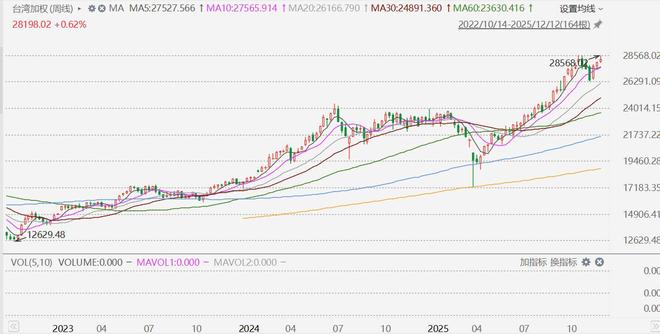 来源:格隆汇APP 格隆汇12月12日|台湾加权指数今日收涨0.62%,报28198.02点。本周累涨0.78%,为连续第3周上涨, 本周期间一度再创历史新高位(28568点)。台湾加权指数年内累涨22.41%。 ...