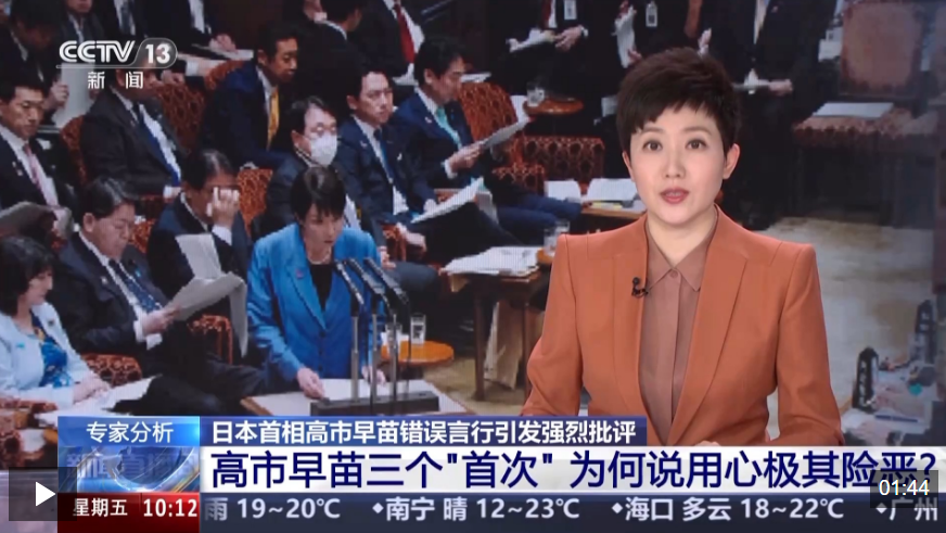 视频丨高市早苗涉台错误言论 为何说用心极其险恶