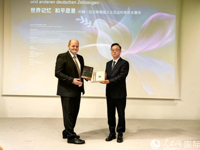 人民网柏林9月29日电(记者郭梓云)9月29日,《世界记忆 和平愿景——约翰·拉贝等德国人士见 证的南京大屠杀》主题展览在柏林中国文化中心开幕。本次展览共展出110余幅珍贵历史图片、22件 (套)实物展品,并配有视频、音频资料及2处场景互动装置。通过"二战中的南京大屠杀暴行""人道主 义救援""维护和平的共同愿景"三部分,展览生动再现侵华日军在南京犯下的滔天罪行,讲述德国友人 约翰·拉贝等亲历者的人道主义行动,呼吁铭记历史、珍视和平。 中国驻德国大使馆公使衔参赞杨琤琤在致辞中表示:"中国人民始终没有忘记拉贝先生对生命的大 爱和对和平的追求,与拉贝家族的情谊跨越百年延续至今。和平来之不易,历史不容忘记,应共同铭记 历史,携手面向未来,做正确历史记忆和人类良知的守护者,做友谊与合作的推动者,使和平与正义的 薪火代代相传。" 柏林中国文化中心副主任何文波在致辞中说:"纪念这段历史,不是孤立的回望,而是通过文化与 记忆的桥梁,让不同国家、不同民族的人们读懂中国人民在侵略战争中承受的苦难、对和平的执着坚 守,以及人类在面对共同邪恶时的正义共鸣,从而凝聚起超越时空的精神共识。" 侵华日军南京大屠杀遇难同胞纪念馆馆长周峰向 ...