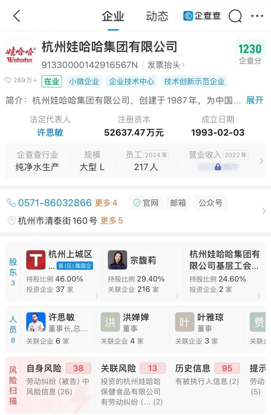 2025年9月,西双版纳、新乡等地多家娃哈哈关联公司陆续完成名称变更,正式启用"宏胜饮料"作为主体名称,释放出明确的品牌独立信号。 11月27日,企查查App显示,近期,杭州娃哈哈集团有限公司(下称"娃哈哈")完成法定代表人及高管备案变更,宗馥莉正式卸任公司法定代表人、董事 长及总经理职务,上述职务由许思敏接任。 股权穿透数据显示,宗馥莉目前仍持有娃哈哈29.40%股权,维持第二大股东地位,这意味着其在企业战略层面的话语权得以延续。 业内分析指出,从现有信息来看,以宗馥莉为核心关联方的多重风险仍处于持续发酵阶段,可能对娃哈哈的股权稳定性、品牌协同效应及经营发展节奏产 生深远影响。这家营收规模超700亿元的国民饮料龙头企业,能否借此进入治理新阶段,仍面临多重挑战。 宗馥莉仍持29.4%股权 关联企业加速独立布局 股权穿透结果显示,宗馥莉当前持有娃哈哈29.40%股权,第二大股东的核心地位未发生变动。 值得注意的是,近两年宗馥莉已通过其控制的关联企业宏胜饮料集团,加速推进独立品牌生态布局。 更早之前的2024年下半年,宗馥莉已推动娃哈哈核心部门员工及经销商合同转签至宏胜体系,西藏、青海等14个区域市场的经销商已全 ...