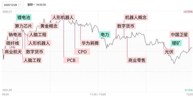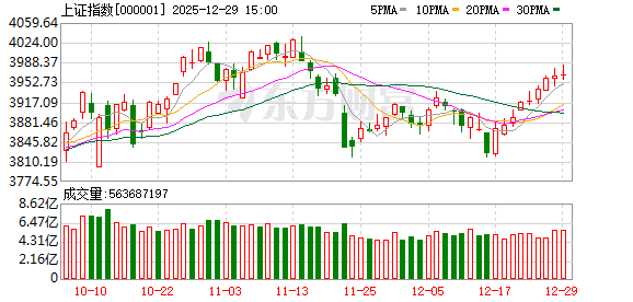 两大板块个股掀涨停潮。 12月29日,上证指数微涨实现九连阳,刷新今年以来的最长连阳纪录。截至收盘,上证指数上涨0.04%,深证成指下跌0.49%,创业板指下跌0.66%。 盘面上,机器人概念走强,上纬新材(688585)等近20股涨停;商业航天概念延续强势,神剑股份(002361)8连板,中国卫星(600118)4连板,此外还有 十余股涨停;数字货币概念活跃,御银股份(002177)、翠微股份(603123)涨停,拉卡拉(300773)涨超12%;碳纤维概念拉升,和顺科技(301237) 20%涨停,吉林化纤(000420)涨停。此外,石油、多元金融、风电、光伏等板块涨幅居前;能源金属、电池、医药商业、商业百货、酿酒、锂矿概念等 板块跌幅居前。全市场约2000只个股上涨,今日成交2.16万亿元。 中信建投(601066)日前发布研报认为,经历了此前中期调整,近期上证指数八连阳传递了积极信号,A股跨年行情已经启动。在机构投资者的一致乐观 预期下,明年春季躁动行情有望提前;海外AI模型调整结束,美国战略重心西迁,海外流动性和风险持续改善;近期"十五五"产业政策与事件密集发布, 投资者政策预期高涨;以上三大预期共 ...