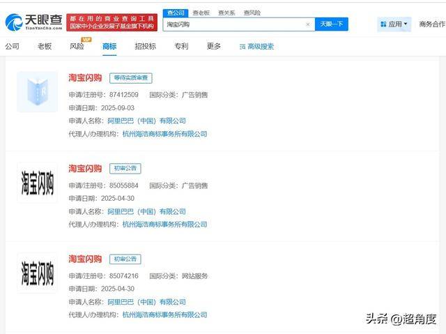 据媒体报道,近日,饿了么App最新的内测版本已更名为"淘宝闪购",版本号更新至12.0.1。此次更新 的"淘宝闪购"标语为"外卖放心点,美食准时达"。目前"淘宝闪购"正处于灰度测试阶段,仅对部分用户 开放体验。 天眼查知识产权信息显示,今年以来,阿里巴巴(中国)有限公司已申请注册多枚"淘宝闪购""淘宝闪 购 点外卖更优惠"商标,国际分类包括广告销售、网站服务、健身器材等,其中部分商标状态为初审公 告。 ...