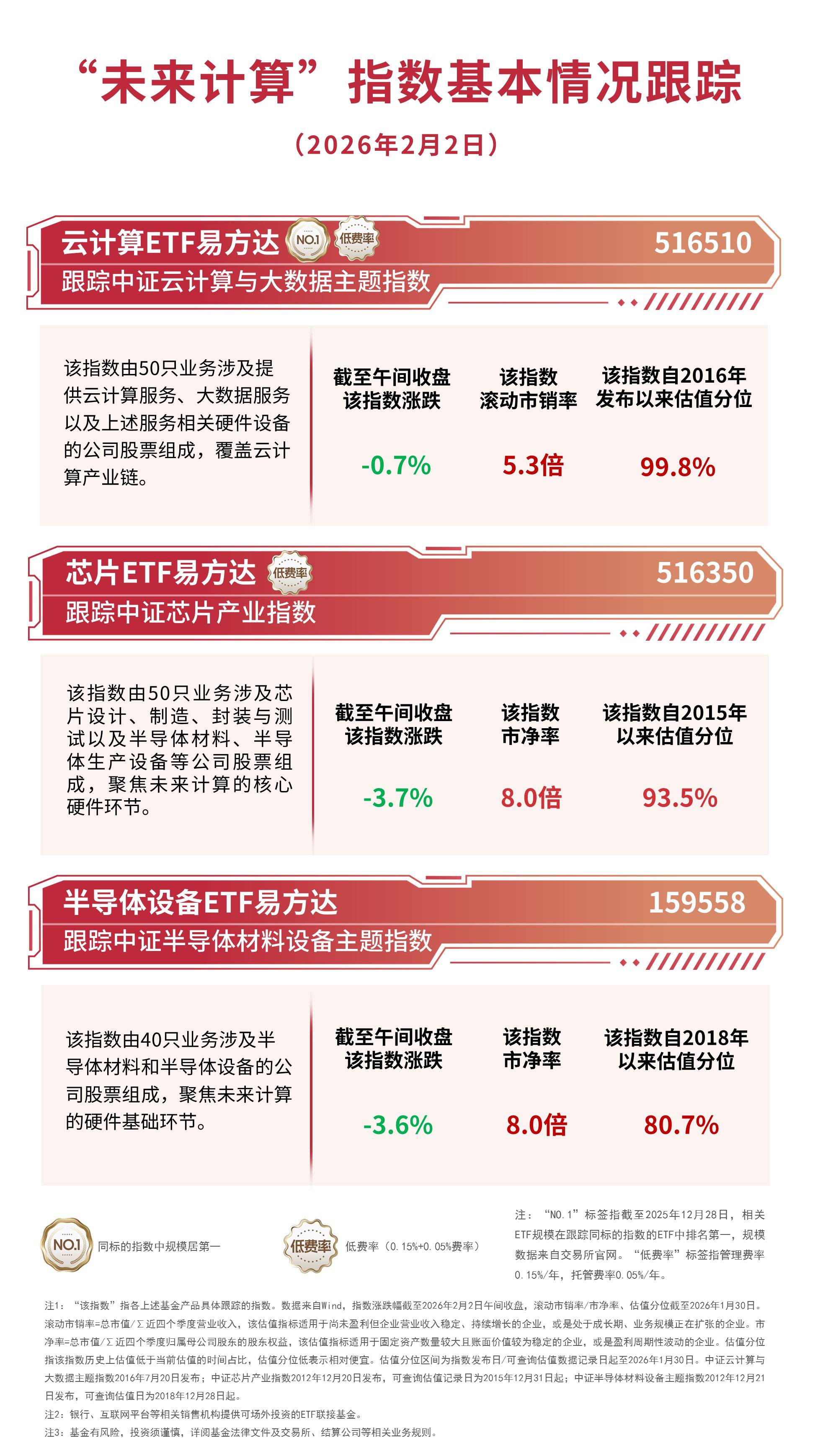 市场表现与资金流向 - 截至午间收盘,中证云计算与大数据主题指数下跌0.7% [1] - 截至午间收盘,中证半导体材料设备主题指数下跌3.6% [1][5] - 截至午间收盘,中证芯片产业指数下跌3.7% [1][5] - 半导体设备ETF易方达(159558)半日净申购达700万份 [1] - 该ETF在1月份获近30亿元资金净流入,市场关注度较高 [1] 行业结构与指数构成 - 中证芯片产业指数由50只业务涉及芯片设计、制造、封装与测试以及半导体材料、半导体生产设备等公司股票组成,聚焦未来计算的核心硬件环节 [3] - 中证半导体材料设备主题指数由40只业务涉及半导体材料和半导体设备的公司股票组成,聚焦未来计算的硬件基础环节 [5] - 半导体设备ETF易方达跟踪中证半导体材料设备主题指数 [5] 行业观点与驱动因素 - 半导体设备是半导体产业链的基石,存储扩产与自主可控共振,国产化空间广阔 [1] - 存储芯片架构正从2D向3D深层次变革,随着3D DRAM技术引入以及NAND堆叠层数向5xx层及以上演进 [1] - 制造工艺中对高深宽比刻蚀及先进薄膜沉积的要求呈指数级提升 [1] - 相关设备厂商将深度受益于工艺复杂度提升带来的红利 [1]