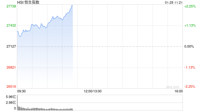 恒生指数持续冲高,涨幅扩大逾2%,续刷2021年7月以来新高