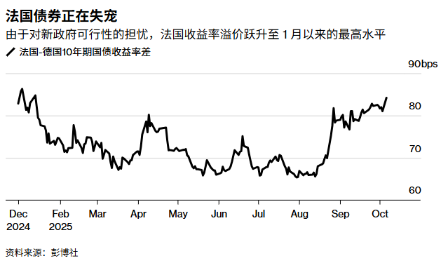 此外,欧股跌幅加深,法国CAC40指数日内跌幅达2%,意大利富时MIB指数下跌0.25%,欧洲斯托克 600指数下跌0.28%。 智通财经APP获悉,当地时间10月6日,法国政治危机进一步加剧——总统埃马纽埃尔·马克龙任命新内 阁仅一天后,总理塞巴斯蒂安·勒科努宣布辞职。这场变动发生在马克龙宣布组建新政府并保留前届内 阁多数高级成员后不到24小时,引发多方强烈反应。这让期待变革的反对党感到不满,而连任的内政部 长、中右翼共和党领袖布鲁诺·瑞泰洛批评新内阁人选未能"打破"过去的模式。 投资者因政治不确定性抛售法国国债,10年期国债收益率上升9个基点至3.6%,导致法国与德国国债利 差(衡量财政风险的关键指标)扩大至89个基点以上,创下2024年底以来新高。 法国社会党领袖奥利维尔·福尔在勒科努辞职前强调,马克龙的执政联盟已"崩溃",新政府"失去合法 性",直言"我们正经历前所未有的政治危机"。 勒科努面临的前景与两任前总理相似:需在分裂的议会中推动包含削减开支和增税措施的预算案,以控 制欧元区最大赤字规模。 荷兰国际集团首席投资策略师文森特·朱文斯在勒科努辞职前接受采访时分析:"当前形势更接近触发新 选举,预计 ...