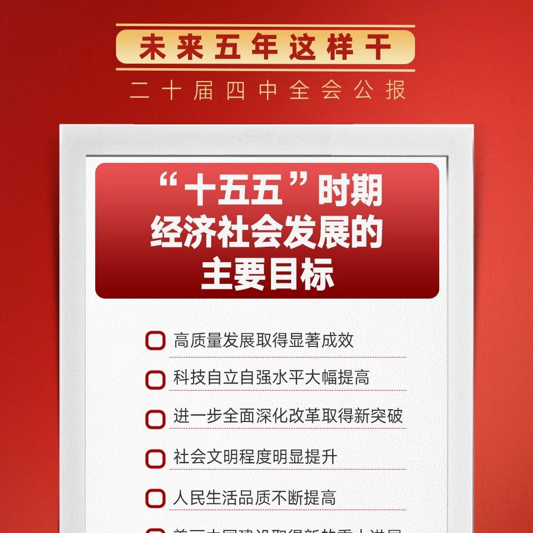 2025年10月23日,如潮的掌声中,党的二十届四中全会审议通过《中共中央关于制定国民经济和社会发 展第十五个五年规划的建议》。 这是乘势而上、接续推进中国式现代化建设的又一次总动员、总部署—— 在以习近平同志为核心的党中央坚强领导下,全党全军全国各族人民万众一心、勠力进取,为基本实现 社会主义现代化奠定更加坚实的基础,不断开创强国建设、民族复兴伟业新局面。 高瞻远瞩 定向领航——科学擘画关键时期中国式现代化建设宏伟蓝图 中华民族伟大复兴的壮阔征程,再次镌刻下时代印记。 现代化,全体中华儿女孜孜以求的美好愿望,中国共产党矢志不渝的奋斗目标。 新中国成立后,积极探索社会主义现代化,我国开启了用中长期规划指导经济社会发展的伟大历程。改 革开放后,我们党确定到本世纪中叶基本实现社会主义现代化的目标。 习近平总书记指出,从第一个五年计划到第十四个五年规划,一以贯之的主题是把我国建设成为社会主 义现代化国家。 党的十九大提出到本世纪中叶全面建成社会主义现代化强国"分两步走"的战略安排,将基本实现社会主 义现代化的时间提前到2035年,党的二十大进一步明确了这一目标。 这意味着,在全面建成小康社会的基础上,到2035年基 ...