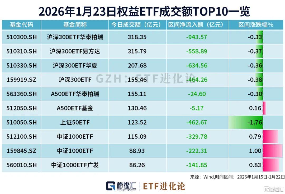 神秘力量的降温操作持续! 今日,多只沪深300ETF再爆发历史天量成交额,两只沪深300ETF成交额直接突破300亿: 沪深300ETF华泰柏瑞成交额达到318亿元,创2024年10月8日以来新高,沪深300ETF易方达成交额达315亿元,创上市来新高。 | 基金代码 | 基金简称 | 今日成交额(亿元) | 区间净流入额(亿元) | 区间涨跌幅% | | --- | --- | --- | --- | --- | | 510300.SH | 沪深300ETF华泰柏瑞 | 318.35 | -943.57 | -0.33 | | 510310.SH | 沪深300ETF易方达 | 315.79 | -558.89 | -0.37 | | 510330.SH | 沪深300ETF华夏 | 207.68 | -634.56 | -0.36 | | 159919.SZ | | 沪深300ETF G Z H :155:46 下进化 464.26 | | -0.38 | | 563360 SH | A500ETF华泰柏瑞 | 155.11 | -24.60 | -0.30 | | 512050.SH | A500ETF ...