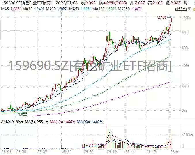 强势爆发!有色矿业ETF招商(159690)放量涨4.28%!紫金矿业总市值突破万亿!