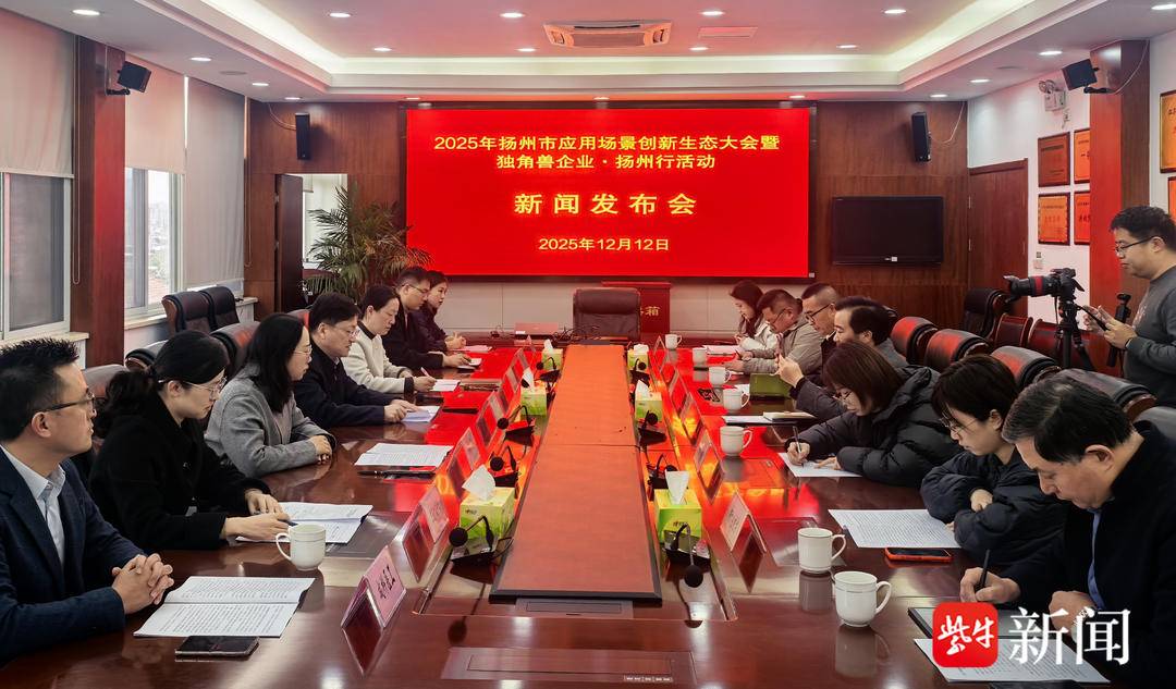 扬州场景创新"四个率先"一一看过来 12月12日,扬州市科技局召开应用场景创新生态大会暨独角兽企业.扬州行活动新闻发布会。扬子晚报/紫牛新闻记者从发布会上获悉,该市将于12月17日 举办2025年扬州市应用场景创新生态大会暨独角兽企业.扬州行活动。体现在"四个率先"上,扬州搭建"政策引导-清单发布-资金支持-协同推进"的场景培 育框架,精准踩准"创新转化"的关键点,通过体系化保障、精准化对接、品牌化推广,将场景资源转化为发展优势,在全国地级市中率先走出了一条场景 创新驱动高质量发展的特色路径。 新闻发布会场 今年应用场景创新生态大会"三大环节"看过来 记者从发布会上获悉,2025年扬州市应用场景创新生态大会暨独角兽企业扬州行活动,作为"景秀扬州"品牌年度重磅活动,由扬州市委、市政府主办,市 科技局、北京市长城企业战略研究所、生态科技新城管委会、市科技创新协会承办。活动总体分为三个环节:一是"品牌展示与成果发布"开幕式,现场还 将举行扬州市场景创新促进中心、生态科技新城场景创新服务中心启动仪式,公布应用场景建设项目立项名单、发布《2025年扬州市应用场景案例》,通 过数字虚拟人"扬小景"发布2025年第二批应用 ...
