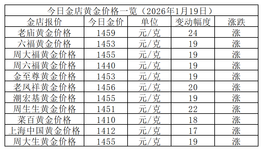 金价普遍上扬!2026年1月19日国内品牌金店行情速递!