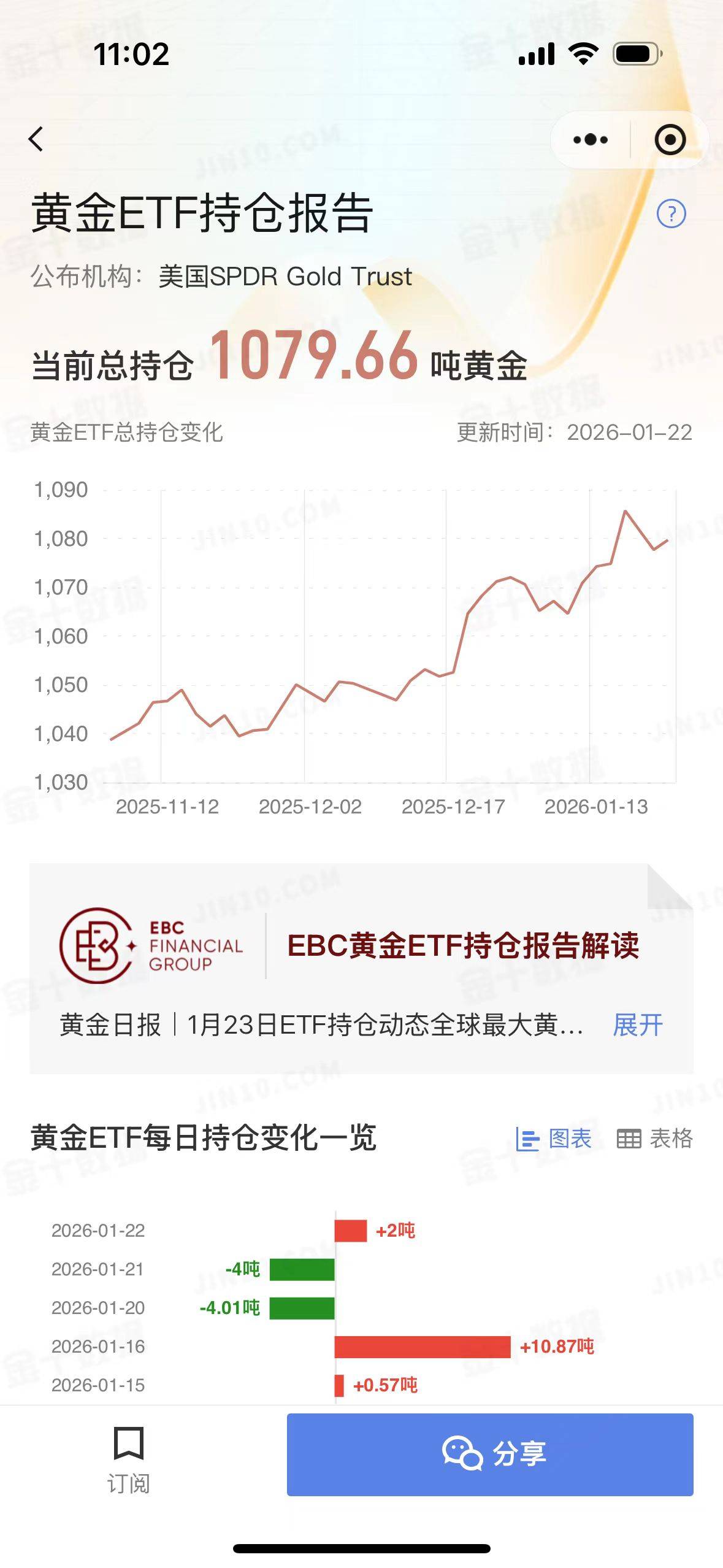 黄金ETF持仓量报告解读(2026-1-23)格陵兰局势降温 黄金涨势放缓