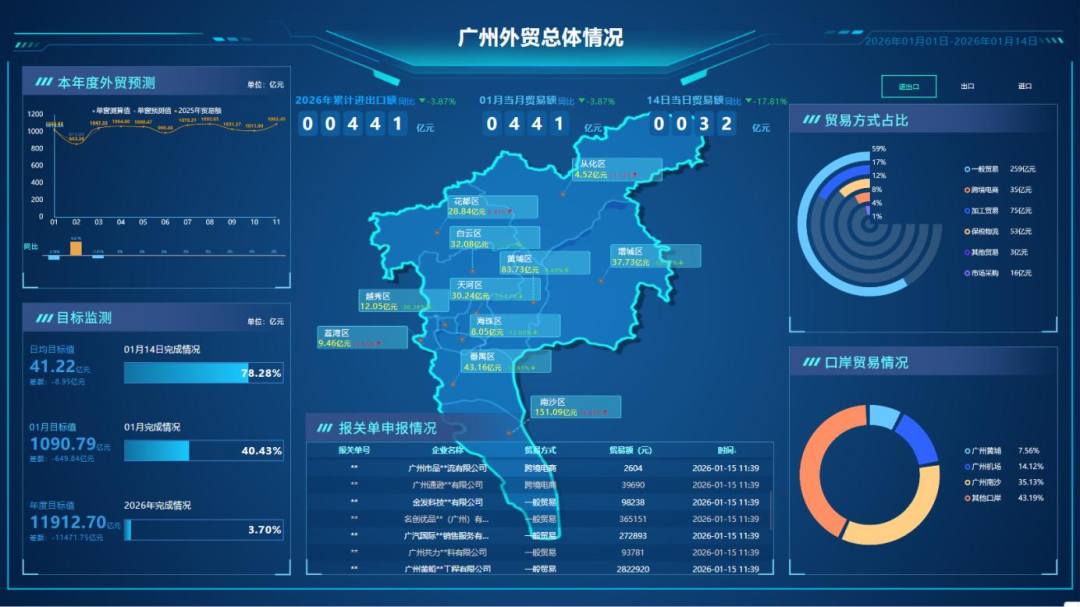 2025年,全球经贸格局深度调整,贸易壁垒、关税波动等挑战交织叠加,外贸市场承压前行。在此背景下,广州锚定高质量发展目标,以制度创新破解发 展难题,以平台升级拓宽开放路径,交出了一份成色十足的成绩单。2025年,全年外贸进出口12407.2亿元、增长10.4%,占全省13.1%;出口8256.5亿 元、增长17.8%,增速居全省首位、全国前十大外贸城市前列,一系列创新实践勾勒出千年商都外贸高质量发展的清晰脉络。 亮点六:打造全国首个"安检+清关"双前置物流货站 亮点一:跨境电商进出口额再创新高 2025年,广州跨境电商进出口总额再创历史新高,达2100亿元,同比增长超16%。广州跨境电商蓬勃发展,主要得益于多维创新与高效服务。2025年,广 州出台跨境电商专项工作方案并配套资金扶持政策,同步加快行业立法进程;实现带电货物出口常态化,首创"双前置"货站,提升通关时效;打造跨境智 慧物流信息服务平台,落地全国首票"离境即退税"业务,降低企业运营成本;开展跨境电商交易会、跨境电商大会、"跨境电商+产业带"活动,推动传统 产业转型升级与跨境出海,为进出口增长注入持续动能。 亮点二:穗港汽车出口快线落地 为破解国产新能 ...