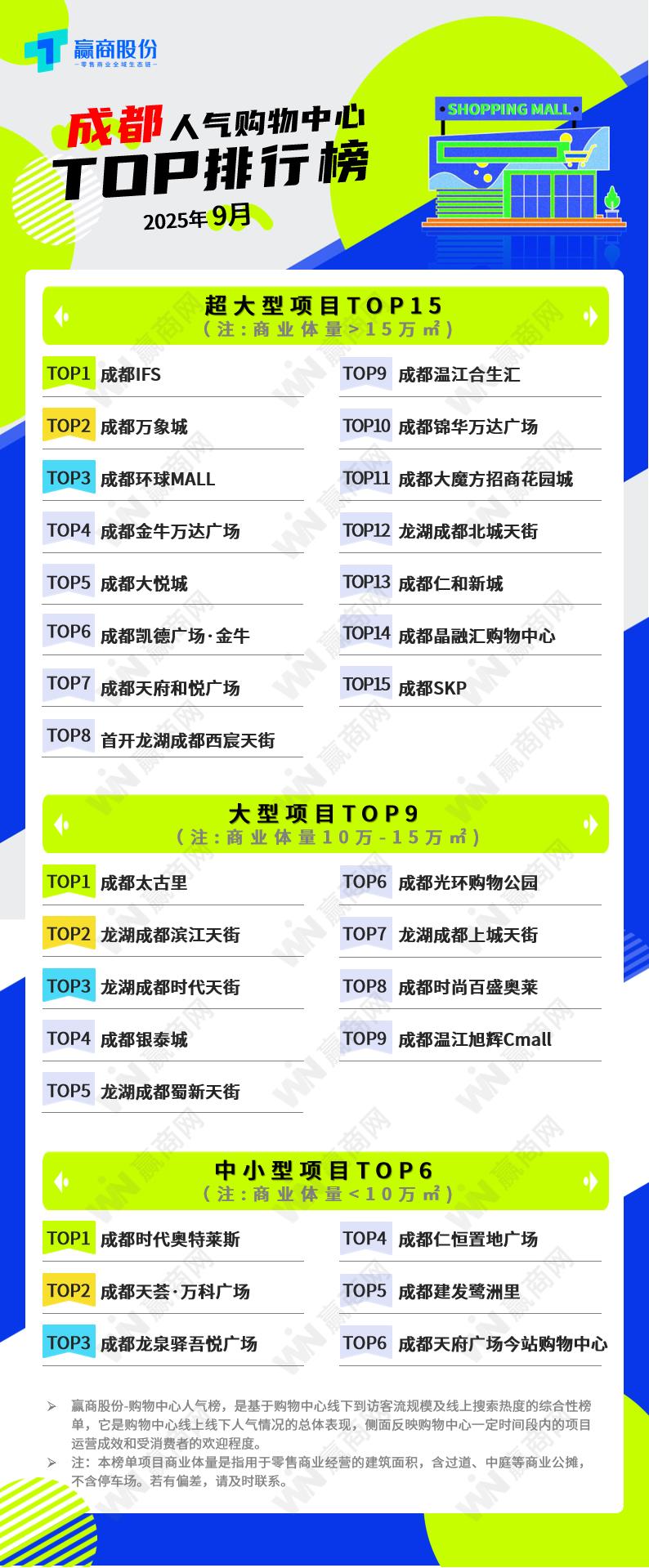 全国及成都商业市场整体趋势 - 第三季度全国23城410个上榜商场月场日均客流均值约5.3万人,环比下滑约1万人,显示暑期后普遍回落 [1] - 成都市场虽同样经历“高位回调”,但人气指数仍稳居全国前列,为年关消费旺季积蓄动能 [1] - 市场从单纯规模竞争转向运营深度、客群粘性与场景创新的多维较量 [4] 头部项目与市场格局 - 成都IFS、成都万象城、成都环球MALL形成的“三巨头”格局在整个季度内稳定,市场领先地位难以撼动 [5] - 头部阵营项目构成成都商业的“基本盘”,其稳定性源于多年品牌积淀、成熟运营体系及持续调改升级 [5] - 超大型项目(>15万㎡)以55%的占比主导TOP20榜单,规模效应显著 [12] 项目排名动态与竞争态势 - 2025年9月TOP20榜单中,6个项目排名上升,5个新项目首次入榜,竞争格局暗流涌动 [1] - 成熟项目展现“深耕效应”,如成都凯德广场·金牛排名从7月TOP10持续攀升至9月TOP6,实现三连升 [9] - 老牌核心项目如成都金牛万达广场与成都仁和新城排名回升,显示其市场韧性与消费粘性 [10] - 龙湖成都时代天街、成都龙泉驿吾悦广场等区域型商业中心排名跃升,显示其巨大潜力和抗风险能力 [10] 新兴业态与项目类型 - 奥莱板块关注度升温,成都时尚百盛奥莱与成都时代奥特莱斯形成“奥莱双雄”局面 [11] - 中小型项目通过“精品化”运营成功突围,如成都时代奥特莱斯的“名品+折扣”模式、成都天荟·万科广场的“潮流品牌孵化地”标签 [12] - 经过改造调营的社区型或区域型商业,如成都温江旭辉Cmall、成都建发鹭洲里,通过精准匹配周边需求重新激活消费潜力 [11] 区域分布与运营商表现 - 传统商业强区锦江区凭借成都IFS、太古里等继续领跑,上榜项目数量与质量占优 [13] - 成华区崛起势头强劲,与武侯区势均力敌各占4席,并在杉板桥-建设路商圈形成强大商业集群效应 [13] - 区域商圈项目占比超过60%,显示成都“多中心、网格化”商业格局日趋成熟 [13] - 龙湖商业以5个项目的绝对优势成为9月最大赢家,其产品线实现网格化布局,体现体系化运营能力 [13] - 市场呈现多元共生生态,国企/央企、港资、外资与本土民企同台竞技,共同保持市场活力 [14]