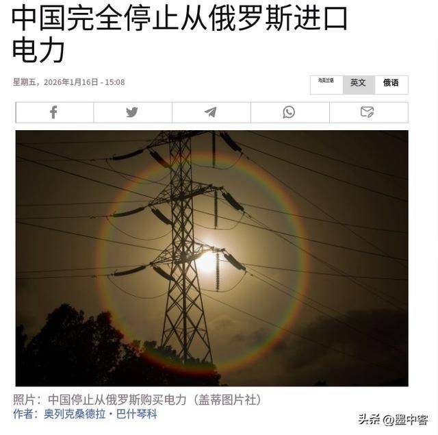 1月16日,《生意人报》曝出一条让人震惊的消息:进入2026年后,中俄之间持续了14年的电力进口合作突然中止。与此同时,俄罗斯总统普京在接见各国 新任大使时,发表了一番意味深长的言论,称一个更加公正的多极世界秩序正在逐步形成。那么,中俄的电力合作为何突然终止?普京的言论又暗示了什么 呢? 这份中俄电力合作协议,最初签订于2012年。那时,中俄关系正处于上升期,双方签署了高达1000亿千瓦时的电力合同,年均40亿千瓦时,合同期长达25 年,堪称能源合作的里程碑。最初的合作进展顺利,尤其在中国东北地区的电力调度上,俄罗斯电力起到了重要的补充作用。更重要的是,合同初期电价相 当低,仅为每千瓦时0.3元人民币,俄罗斯方面乐意以此价格来争取中国市场的份额。然而,随着国际能源市场的变化,俄方的成本不断上升,合同的平衡 逐渐被打破。 进入2026年初,俄罗斯对华出口电价出现了价格倒挂,成为中止合作的直接原因。根据俄罗斯远东地区的电价标准,每兆瓦时电价已经涨至4300卢布,折合 人民币约370元。而此时,中国国内的电价却仅为350元/兆瓦时。意味着,如果继续进口俄罗斯电力,反而比使用国内电力还要贵,长此以往,必然会导致 亏损 ...
