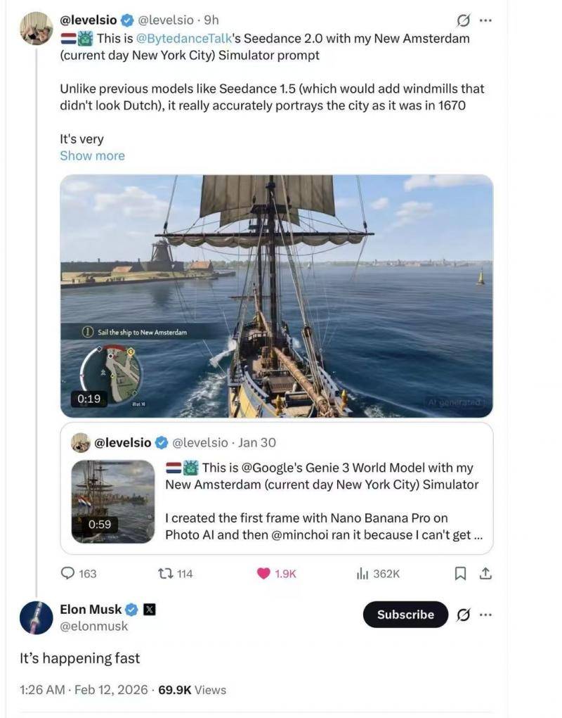 公司产品发布与接入 - 字节跳动于2月12日发布最新视频生成模型Seedance 2.0,并宣布其旗下AI产品豆包和即梦已接入该模型 [1] - 用户可在豆包APP、电脑端、网页版以及即梦APP、即梦网页版等产品中体验Seedance 2.0模型 [1] 产品功能与使用场景 - 在豆包APP和即梦APP中,支持用户通过录音录像完成真人校验,生成本人形象的数字人分身,并使用该分身生成AI视频 [3] - 在豆包电脑端、网页版以及即梦网页版等场景中,平台明确提示暂不支持上传真人人脸素材 [3] - Seedance 2.0支持图像、视频、音频、文本四种模态输入,用户可用图片定义画面风格,用视频指定动作与镜头,用音频控制节奏氛围,使创作过程更自然高效 [4] 技术能力与行业评价 - Seedance 2.0采用极致的稀疏架构提升训练和推理效率,基于统一的多模态视频生成架构,模型具备强大的泛化能力 [5] - 该模型能生成音画同步的高质量音视频,并支持组合多模态参考、视频编辑、视频延长等复杂功能 [5] - 在多模态参考生成、复杂音视频指令遵循、运动稳定性、专业镜头语言、音视频表现力及视听一体化协同等多维度测评中,Seedance 2.0表现均处于业内领先水平 [5] - 其在运动稳定性、指令遵循及画面美感维度有显著提升,生成的复杂动作流畅细腻,并支持专业级组合运镜与叙事节奏控制 [5] - 游戏科学CEO、《黑神话:悟空》制作人冯骥评价Seedance 2.0为“当前地表最强的视频生成模型”,认为其在多模态信息理解与整合能力上实现了飞跃 [4] 市场反响与测试情况 - Seedance 2.0此前已进行小范围内测,凭借多模态参考、精准可控性等亮点在全球范围内引发关注 [4] - 有海外创作者使用该模型制作短片,其效果被埃隆·马斯克评价为“这发生的也太快了” [4] - 在海外社交平台上,有国外用户为使用Seedance 2.0而研究如何申请中国手机号 [4]