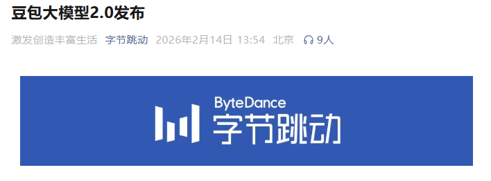 Seedance 2.0之后 字节跳动发布豆包大模型2.0