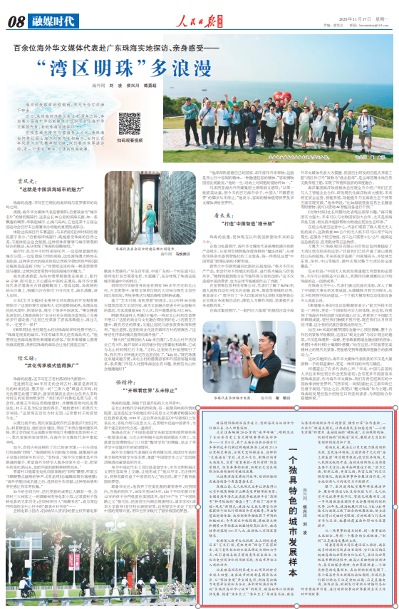 大湾区规则与机制衔接创新 - 全运会历史上首次举办跨境公路自行车赛,赛道全长231.8公里,跨越珠港澳三地并实现全程无需停顿通关[1] - "无感通关"依托北斗定位、射频识别等尖端技术以及"前置查验+闭环管理"的监管模式[1] - 横琴口岸实施"合作查验、一次放行"通关模式,提升两地居民"一小时生活圈"的便利性[3] 文旅产业与智慧旅游发展 - 国庆中秋假期珠海接待游客超300万人次,旅游收入实现显著增长[2] - 珠海AI文旅大模型为游客提供个性化行程规划和实时服务,开启智慧旅游新体验[2] - 桂山岛开展无人机观光业务,全国首座半潜式波浪能养殖旅游平台"澎湖号"及升级版"格盛1号"开创"海洋养殖+观光"新模式[2] 城市更新与创新创业生态 - 北山村老建筑在"艺术引领、有机更新"理念下获得新生,澳门青年创办的文创品牌成为网红打卡点[2] - "澳车北上""港车北上"政策实施使珠海与港澳的创新合作日趋紧密,吸引更多港澳青年前来创业[2][3] - 历史空间活化利用实践为城市开放注入新的活力[2] 海洋经济与低空经济布局 - 蓝色海洋领域推进总投资超千亿元的"海上新基建"项目[3] - 低空经济领域开通无人机物流航线,高效运输网络逐渐覆盖整个大湾区[3] - 传统渔业城市向"区域性海洋中心城市"蜕变[3] 会展经济与城市品牌建设 - 亚洲通用航空展推出VR互动体验飞行、无人机空中足球赛等数字化、智能化观展项目[4] - 珠海航展28年来利用5G、VR/AR等技术打造线上线下融合观展体验,显著提升覆盖面和影响力[4] - 城市持续强化"活力之城、创新之城、美丽之城、共富之城"定位,引进高能级赛事和会展活动以提升对全球创新人才的吸引力[3]