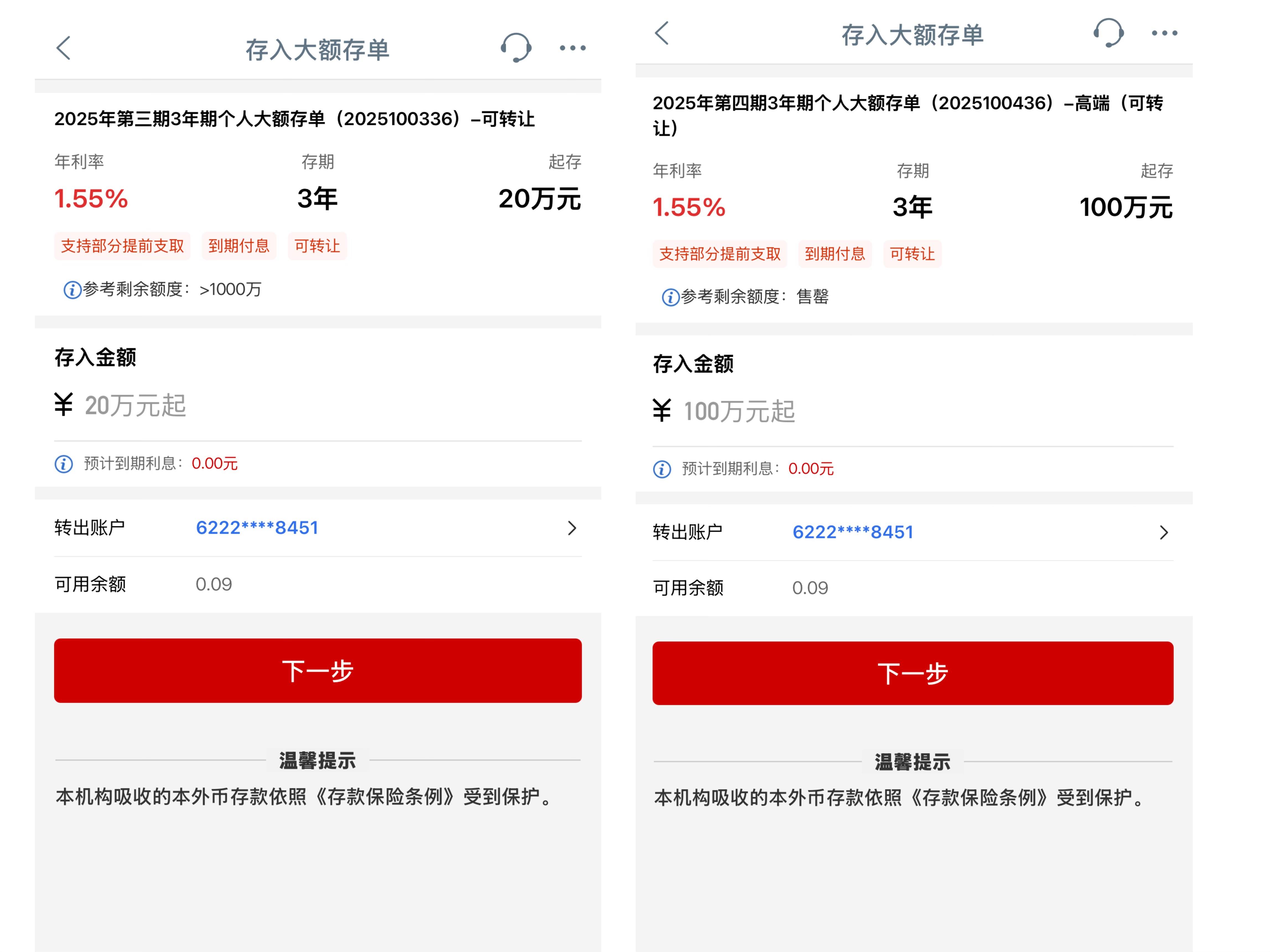 大行百万起购3年期存单产品早已推出 利率与存20万元一致