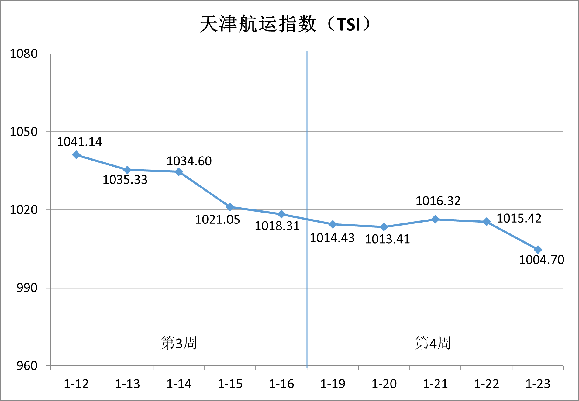 天津航运指数2026年第4周累计下跌1.34%